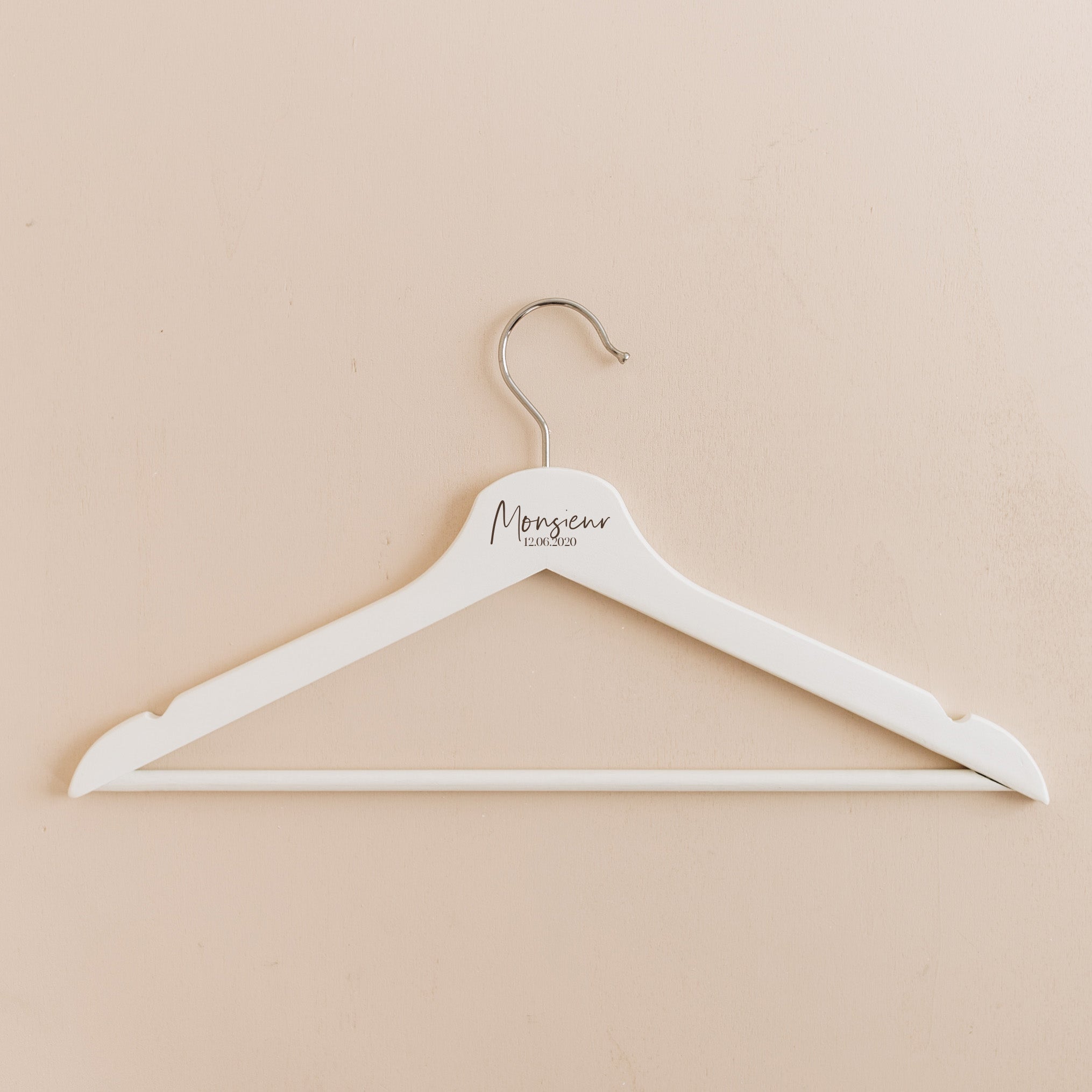Les cintres personnalisés sont un joli cadeau à s'offrir pour la préparation de votre mariage ou pour un autre événement. Imaginés par les Mignonneries, et à personnaliser avec vos prénoms, votre date de mariage ou les termes de votre choix, ils sont gravés dans notre atelier avec amour.