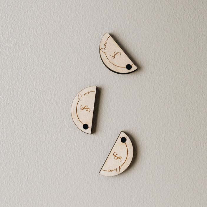 Ces étiquettes sont en peuplier, elles sont découpées et gravées dans notre atelier. Ce produit fait partie de notre collection Folk.