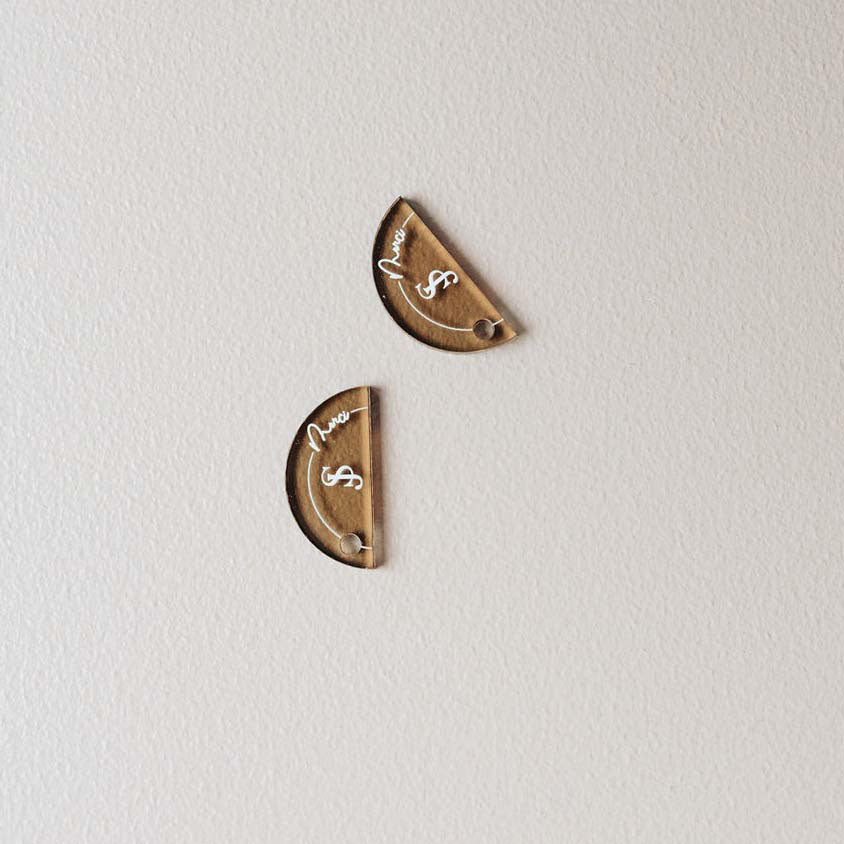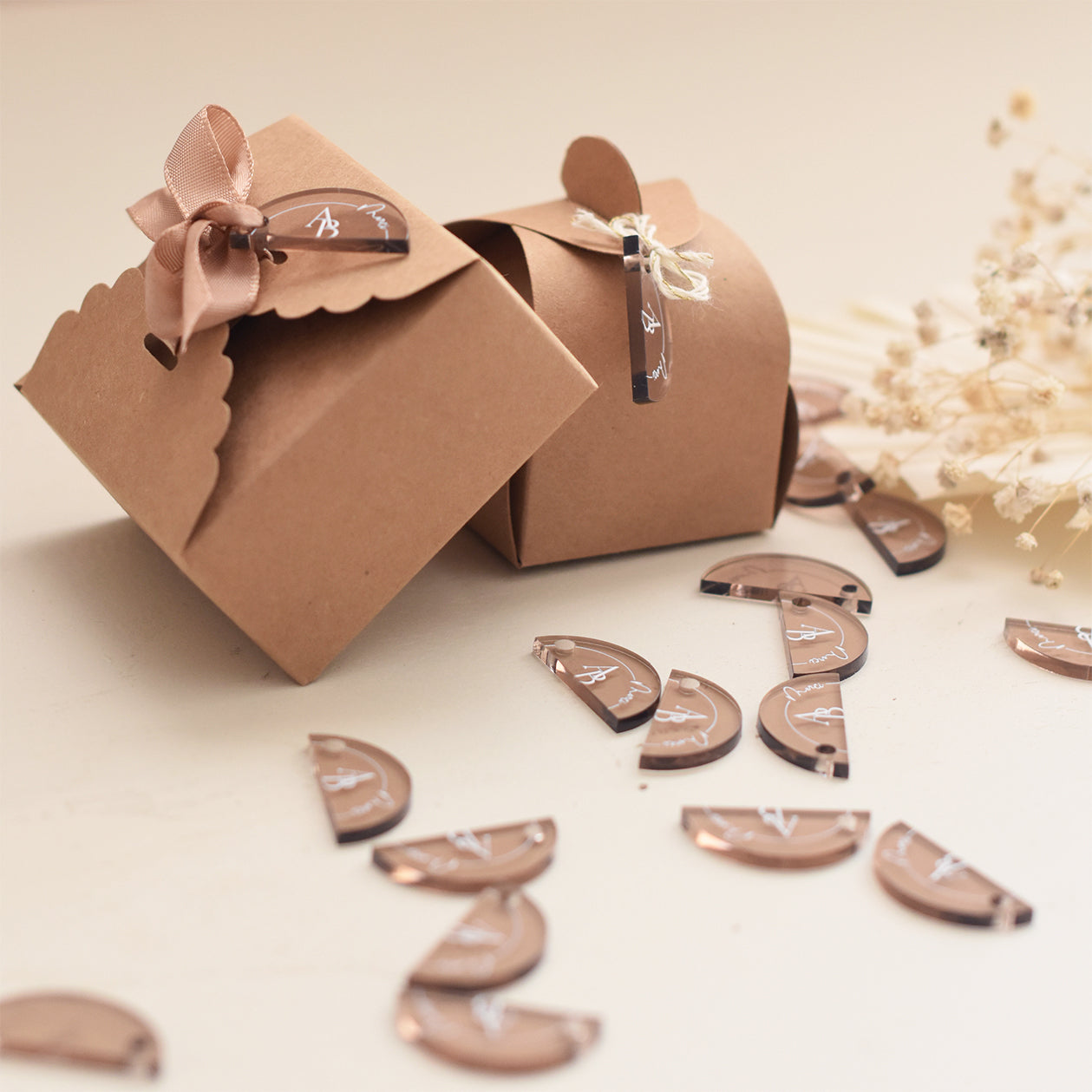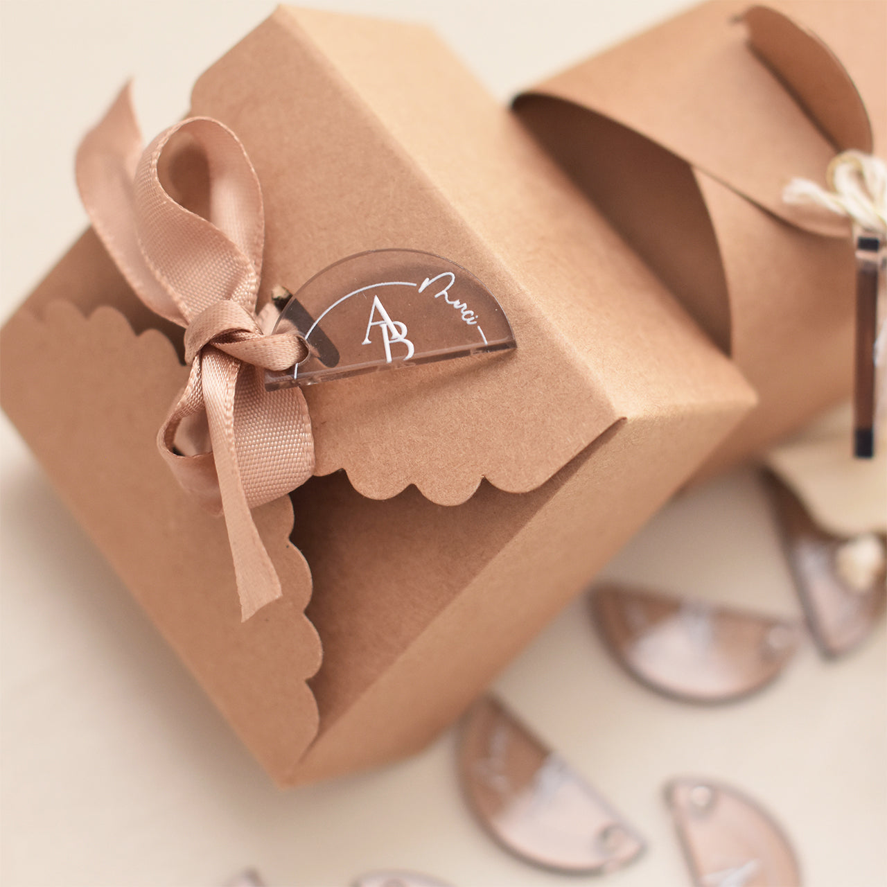 Découvrez nos jolies étiquettes en plexi fumé personnalisées Folk ou décliné dans nos nombreux autres materiaux. Imaginées par Les Mignonneries et à personnaliser avec vos initiales ou le texte de votre choix, elles vous permettront de remercier vos invités en ornant joliment leurs cadeaux.