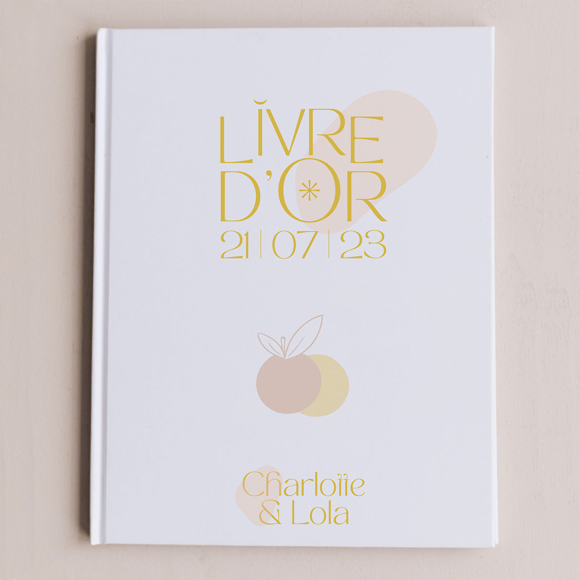 Celui de la collection "Dolce" à la couverture rigide blanche, et au texte coloré, imprimé dans notre atelier, vous séduira par sa simplicité et son originalité. Vous pourrez personnaliser vos prénoms et la date de votre événement sur la page de couverture.