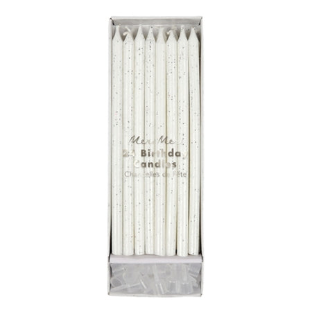 Découvrez ces jolies bougies à paillettes argentées, parfaites pour décorer gâteaux et cupcake lors d'un anniversaire sur le thème espace, lune ou arc-en-ciel!