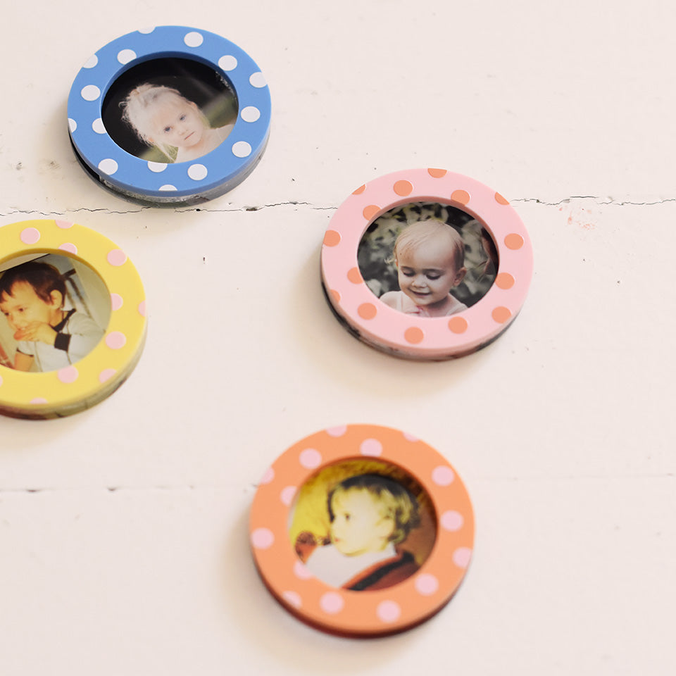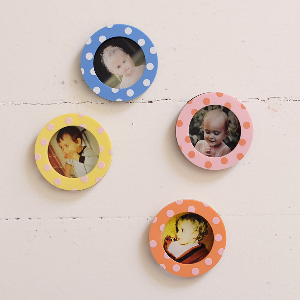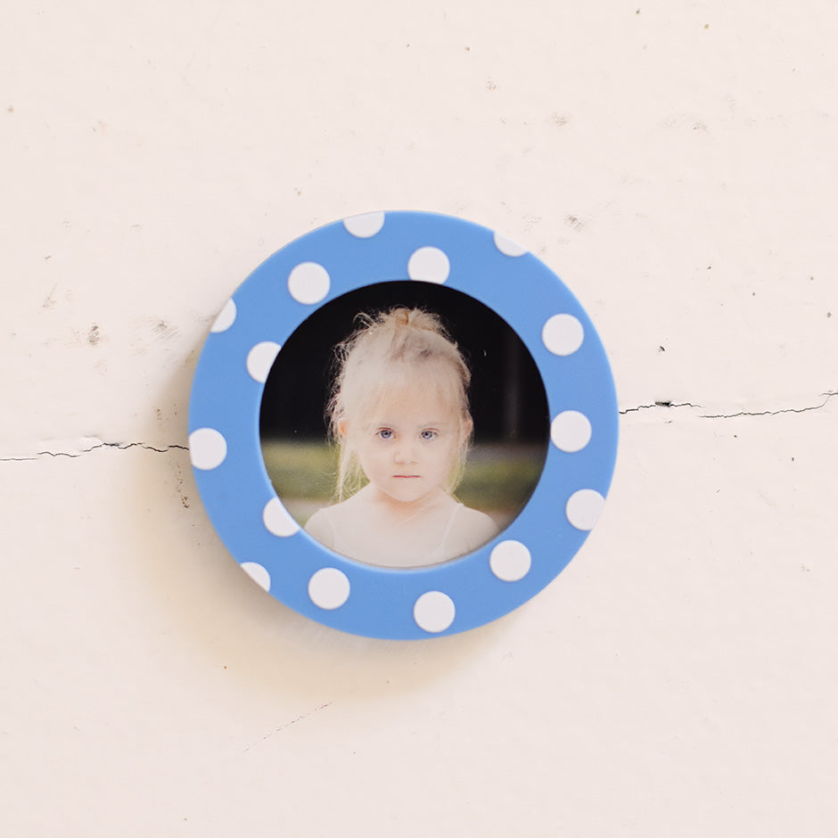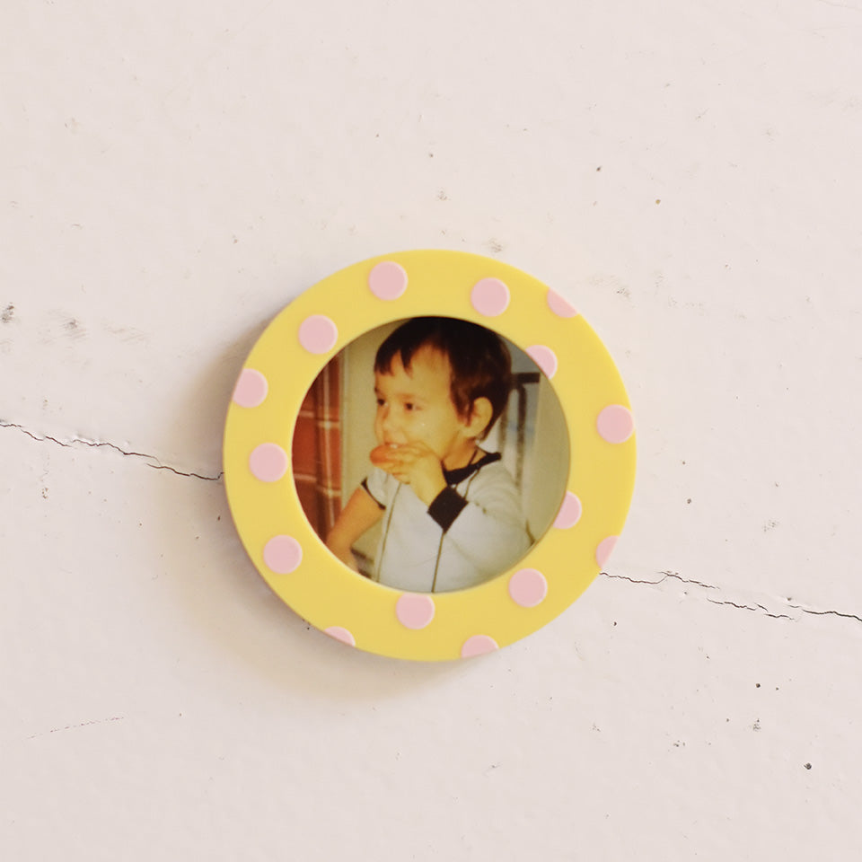 Offrez un cadeau original pour la fête des mères avec notre mini cadre photo motifs pois ! Fabriqué ici, dans notre atelier de Tours, ce cadre peut être placé sur n'importe quelle surface grâce à son adhésif ou son aimant. Ajoutez-le à votre collection de souvenirs colorés et cumulez-les grace à leur prix dégressif.
