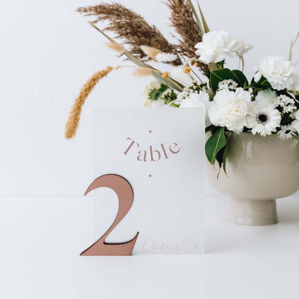Découvrez les noms de table Best Day en plexi givré blanc et bois peint Terracotta. Des noms de tables imaginés et découpés dans notre atelier par Les Mignonneries à personnaliser avec vos propres termes.