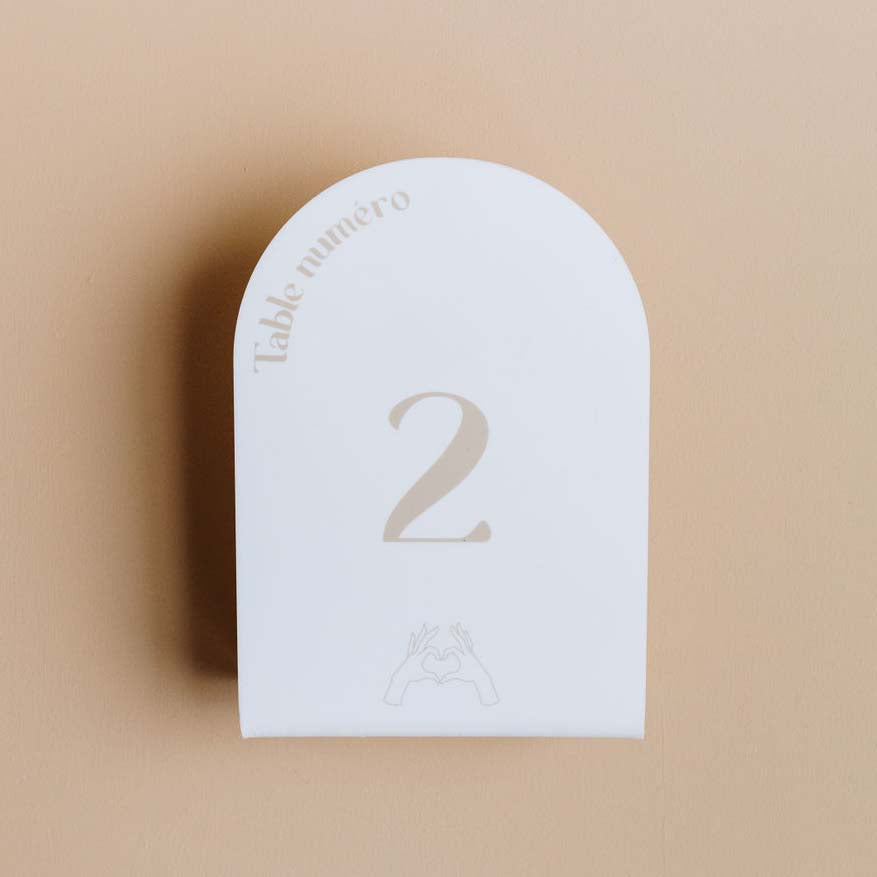Découvrez les noms de table personnalisés en plexi blanc Hands. Des noms de tables coupés et imprimés par Les Mignonneries à personnaliser avec vos propres termes.