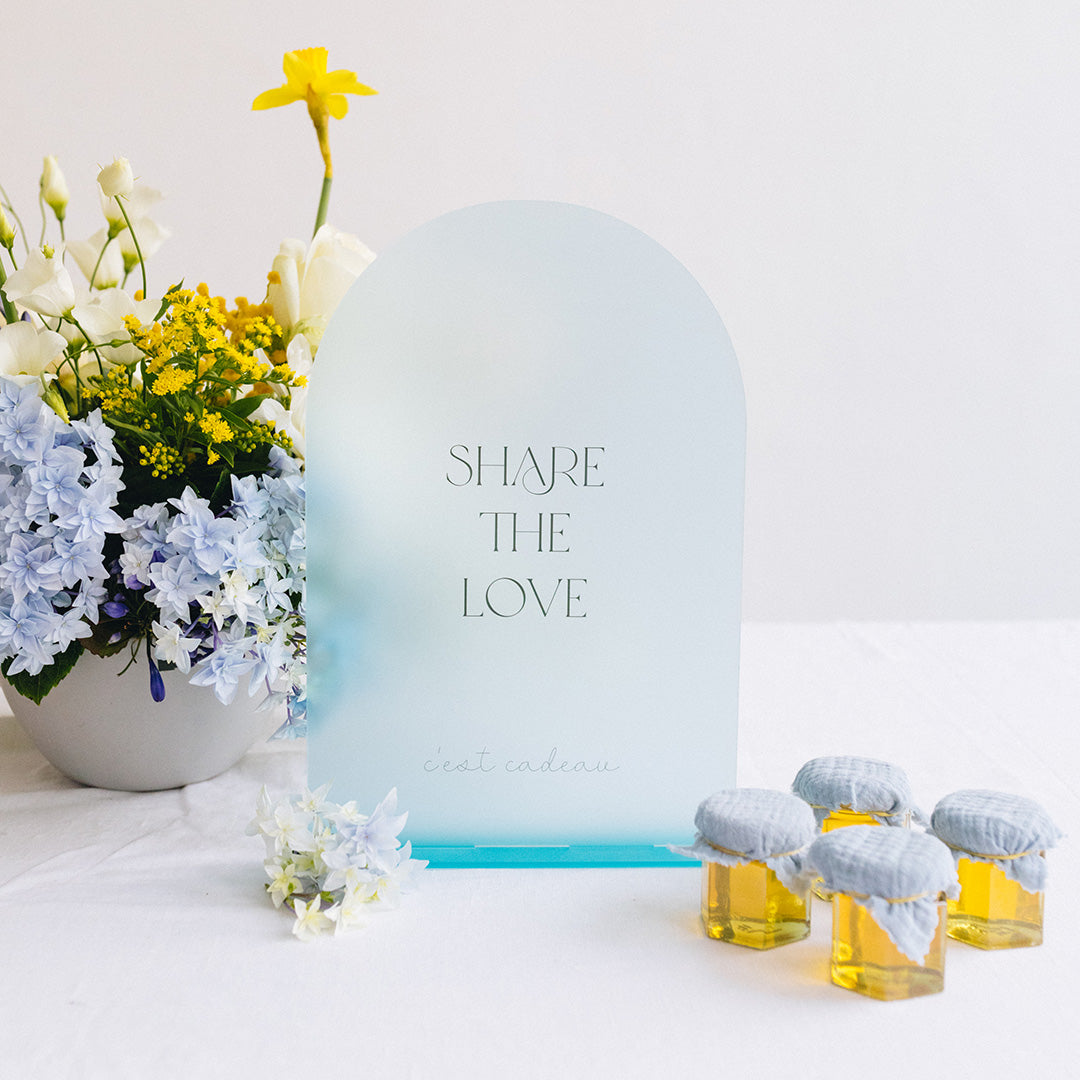 Découvrez notre panneau "Cadeaux d'invités" en plexi givré coloré Pastel. Imaginé par Les Mignonneries, il est découpé et imprimé dans notre atelier.
