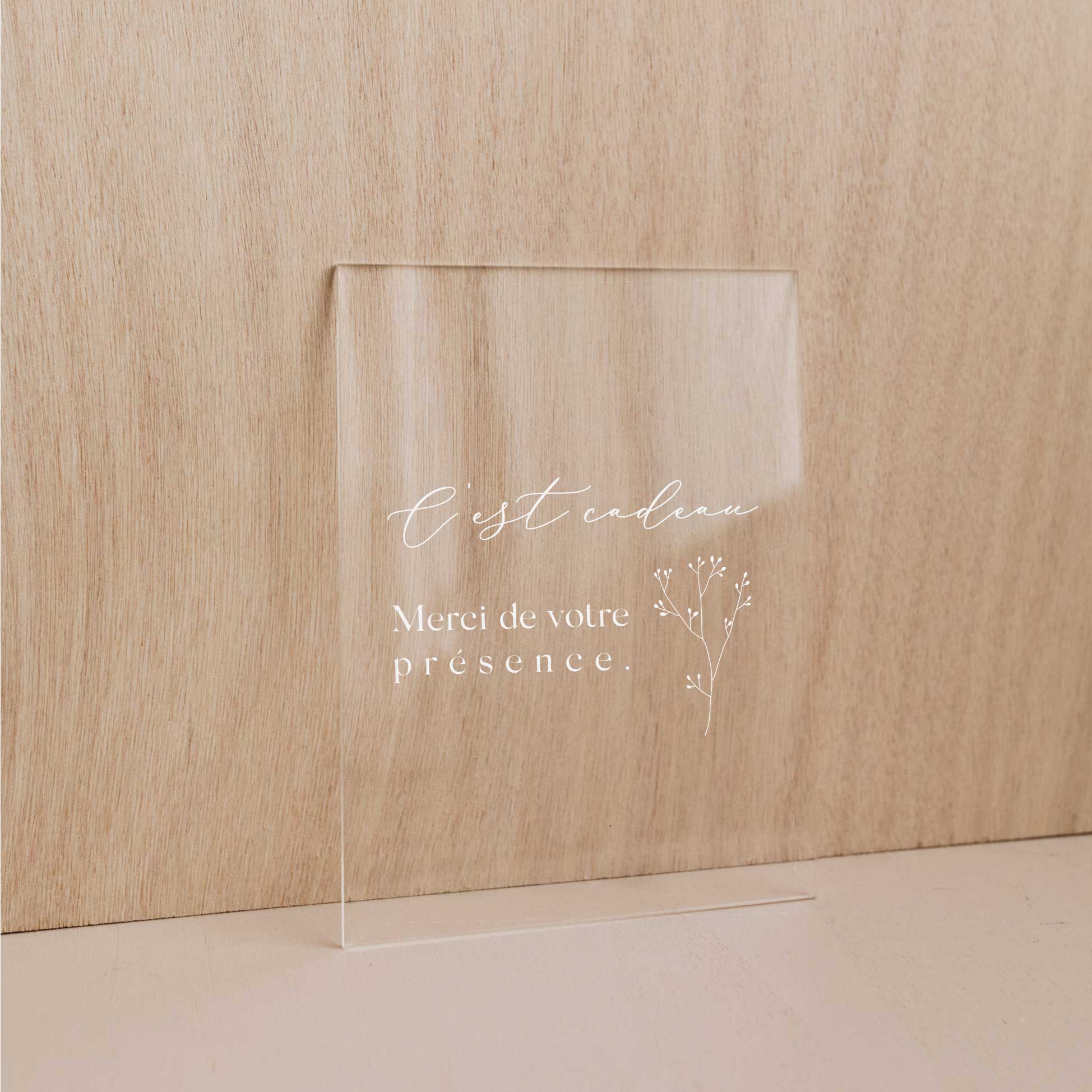 Découvrez notre panneau "cadeaux d'invités" en plexi. Imaginé par Les Mignonneries, il vous permettra de décorer le coin cadeaux de votre mariage.