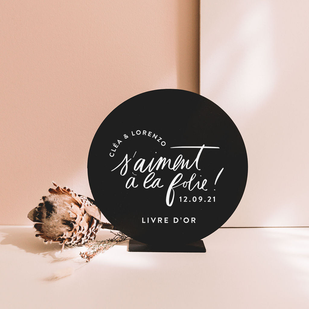 Découvrez notre panneau livre d'or Rebelles. Imaginés par les Bandits events en collaboration avec les Mignonneries, et à personnaliser avec vos prénoms, ils sont entièrement personnalisés dans notre atelier. Profitez d'une création unique et sur mesure dont la calligraphie a été réalisée à la main par l'équipe des Bandits puis adaptée aux produits les Mignonneries.