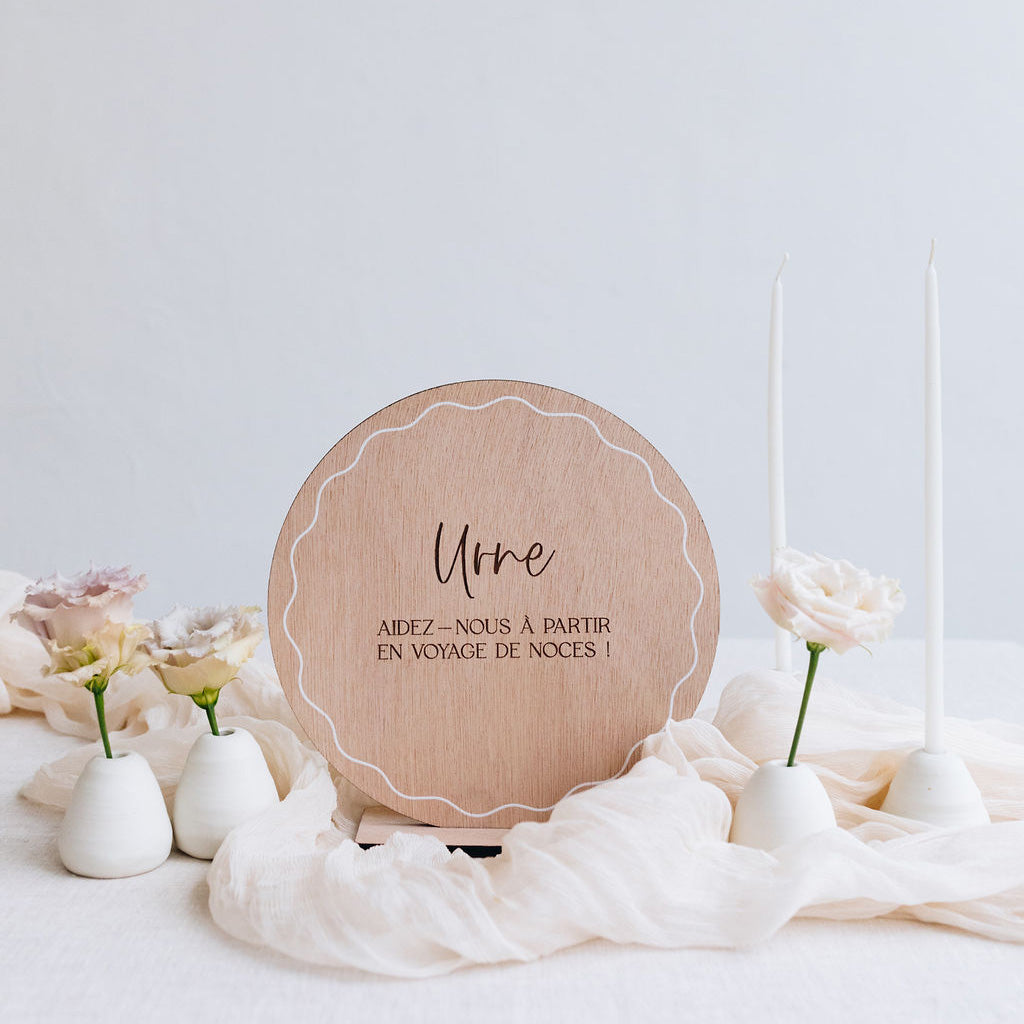 Découvrez notre panneau "Urne". Imaginé par Les Mignonneries, il apportera une touche originale et élégante en le disposant près de votre urne le jour de votre mariage.