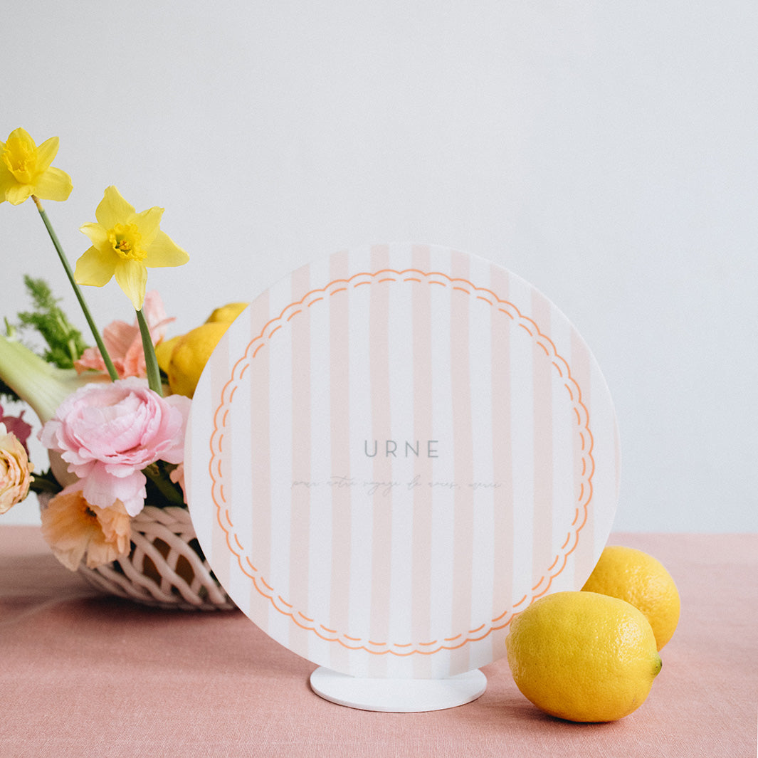 Nos panneaux personnalisés sont une jolie touche à apporter à votre décoration pour votre mariage ou votre évènement tout en permettant à chacun de se repérer. Vous pourrez le poser prêt de votre urne le jour J.