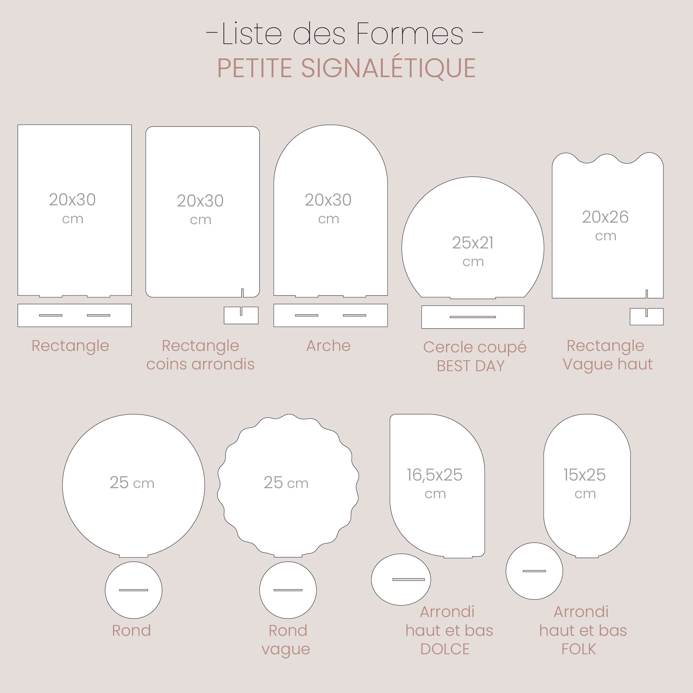Créez votre petite signalétique sur-mesure chez les Mignonneries ! Découvrez nos différents bois, plexi ou papier et personnalisez votre visuel avec nos nombreuses polices aux choix. La liste des matériaux et des polices n'étant pas exhaustive, n'hésitez pas à nous contacter pour discuter de la faisabilité de votre projet.