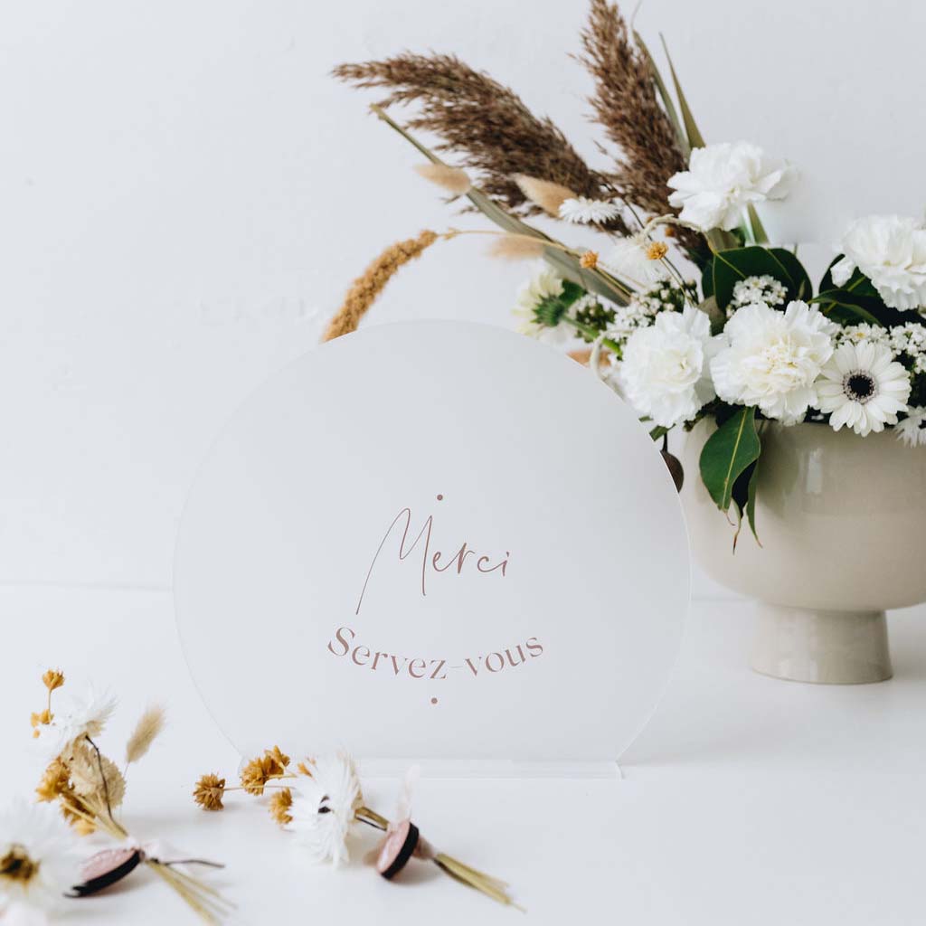 Ce panneau en plexi givré fait partie de notre collection Best Day. Cette collection élégante associe différents matériaux et finitions pour créer une ambiance douce et chaleureuse dans les tons Terracotta. Osez une touche de couleur sobre et distinguée pour votre évènement !