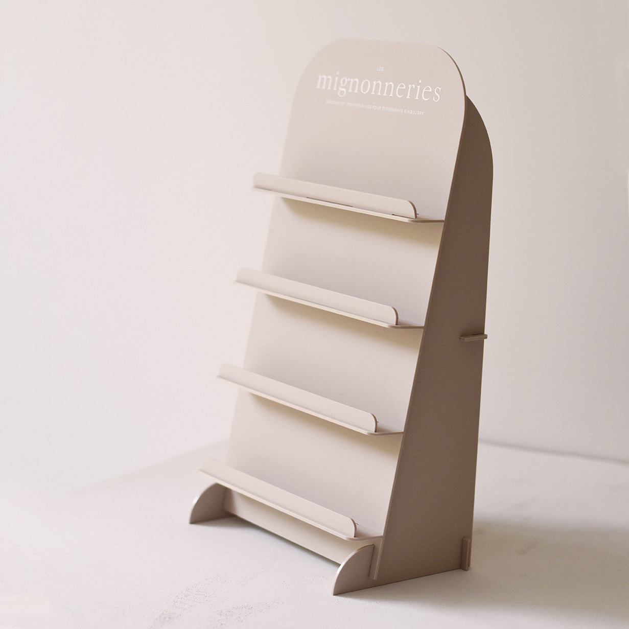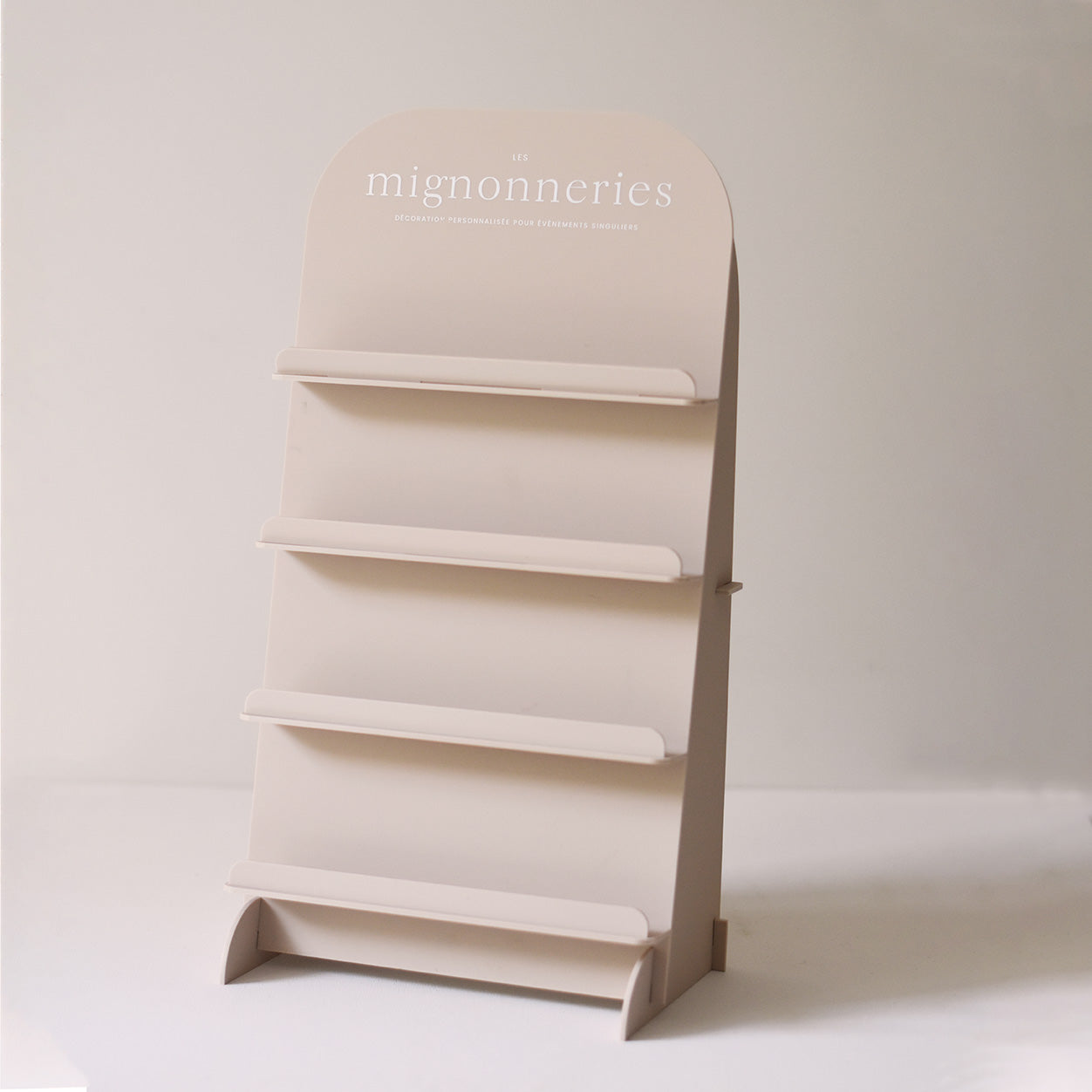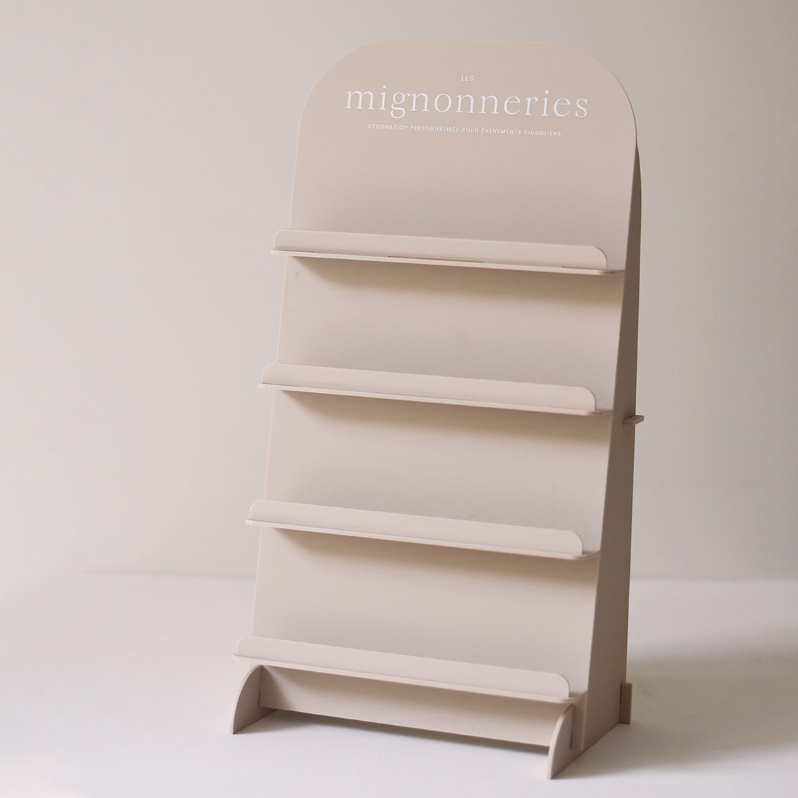 Conçu et fabriqué dans notre atelier de Touraine, une maquette vous sera systématiquement envoyée par nos graphistes avant la production de votre présentoir. Celle-ci pourra être modifiée jusqu'à deux fois supplémentaires (30€ vous seront facturés à partir de la 4ème maquette).