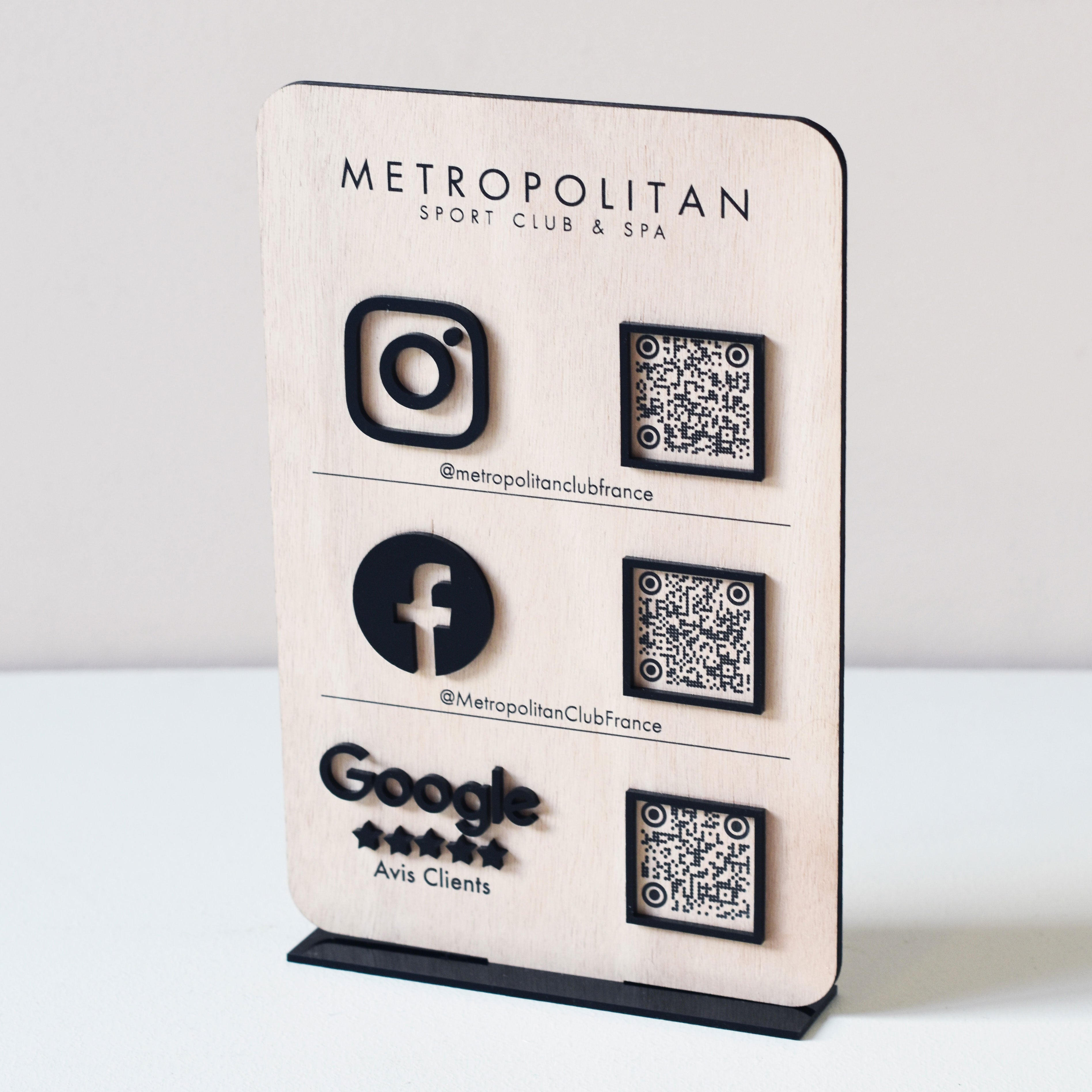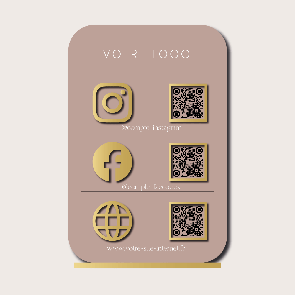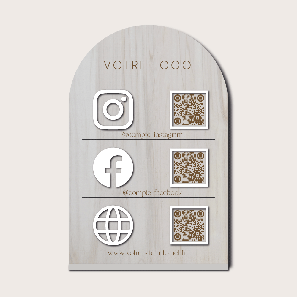 Attirez l'attention de vos clients et prospects avec notre signalétique réseaux sociaux sur mesure ! Élégante, utile et à l'image de votre marque, elle transformera vos clients en abonnés et vos abonnés en clients. Grace aux QR code, vous pourrez rassembler toute votre communauté sur facebook, instagram ou encore tik tok et récolter les avis positifs que vous méritez :)