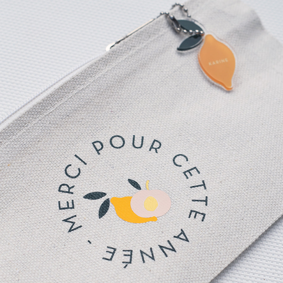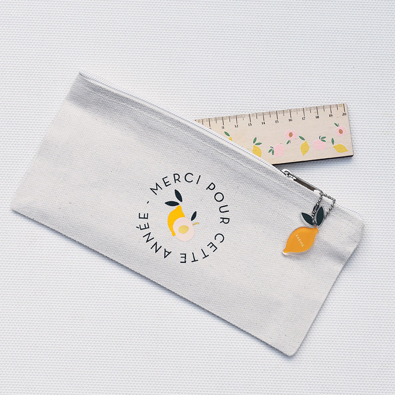 Nos trousses en coton, sont personnalisées dans notre atelier, avec une illustration imaginée par les mignonneries. Le cadeau ideal et pratique pour celles-et ceux qui ont accompagné vos enfants pendant toute une année !
