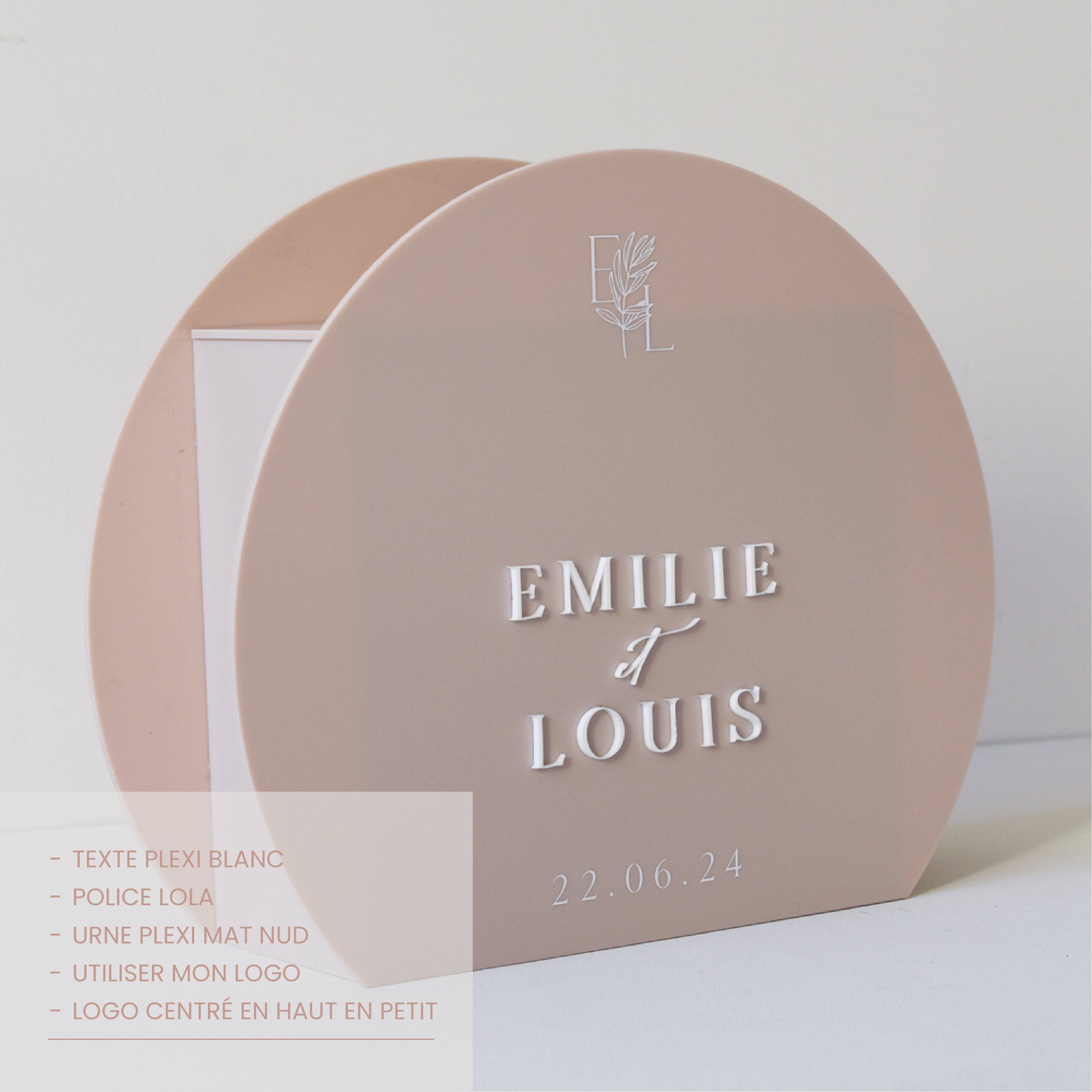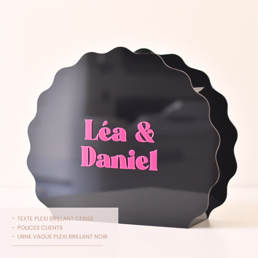 Une urne à la forme originale et arrondie pour votre mariage, un baptême ou tout autre événement imaginée par Les Mignonneries à personnaliser avec vos prénoms.