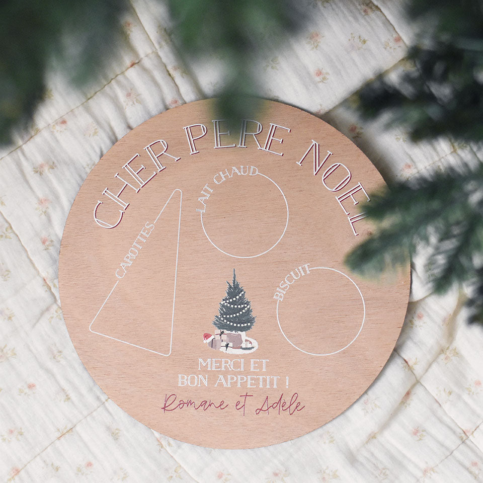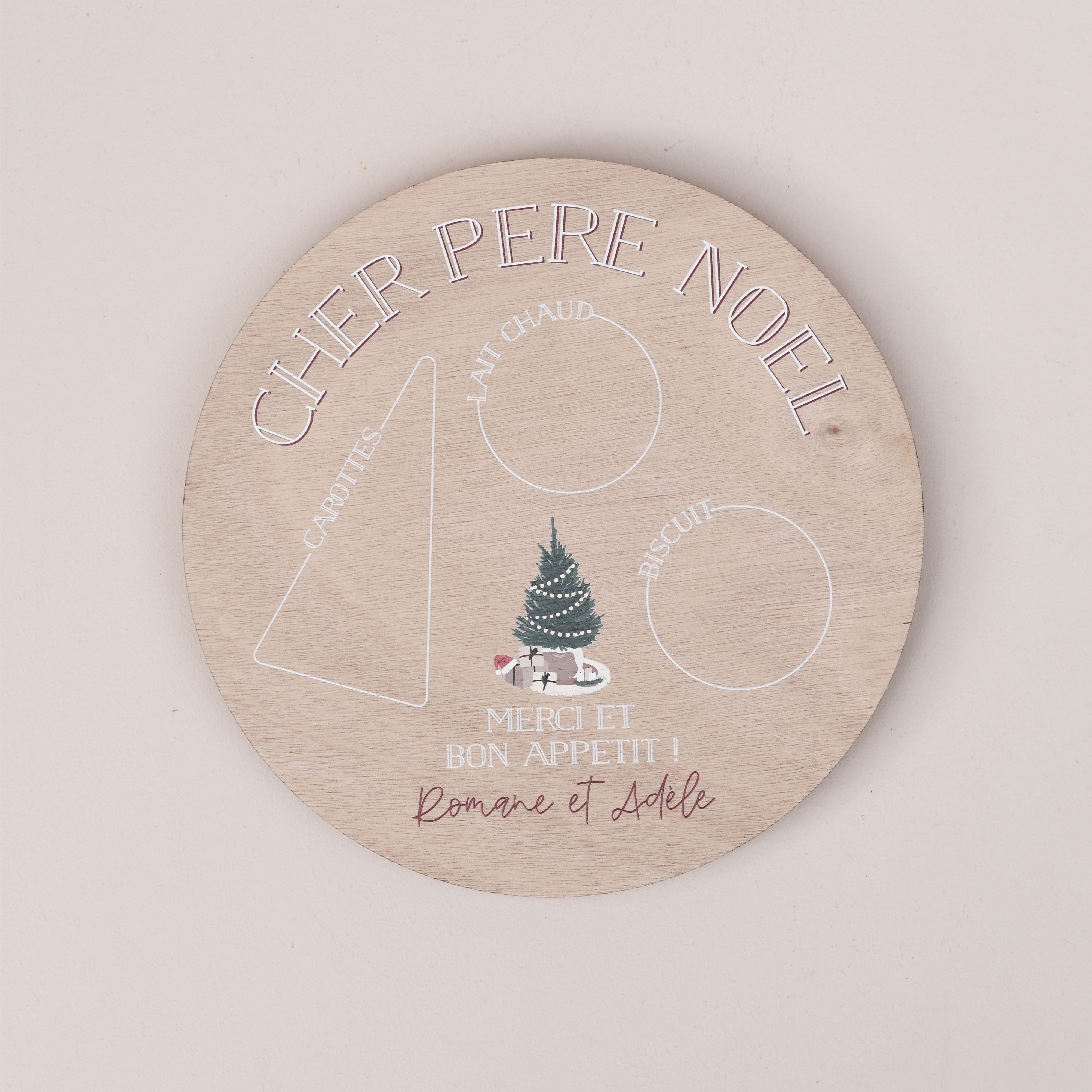 Découvrez notre assiette du père Noël en bois gravée et imprimé. Imaginée par les Mignonneries, et personnalisables au(x) prénom(s) de votre ou vos enfant(s) elle est à déposer au pied du sapin le soir de Noël avec un verre de lait et un biscuit.