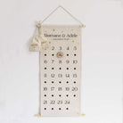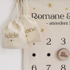 Ce calendrier en coton est fourni avec un pion en bois à faire avancer chaque jour et un sachet pour la surprise.