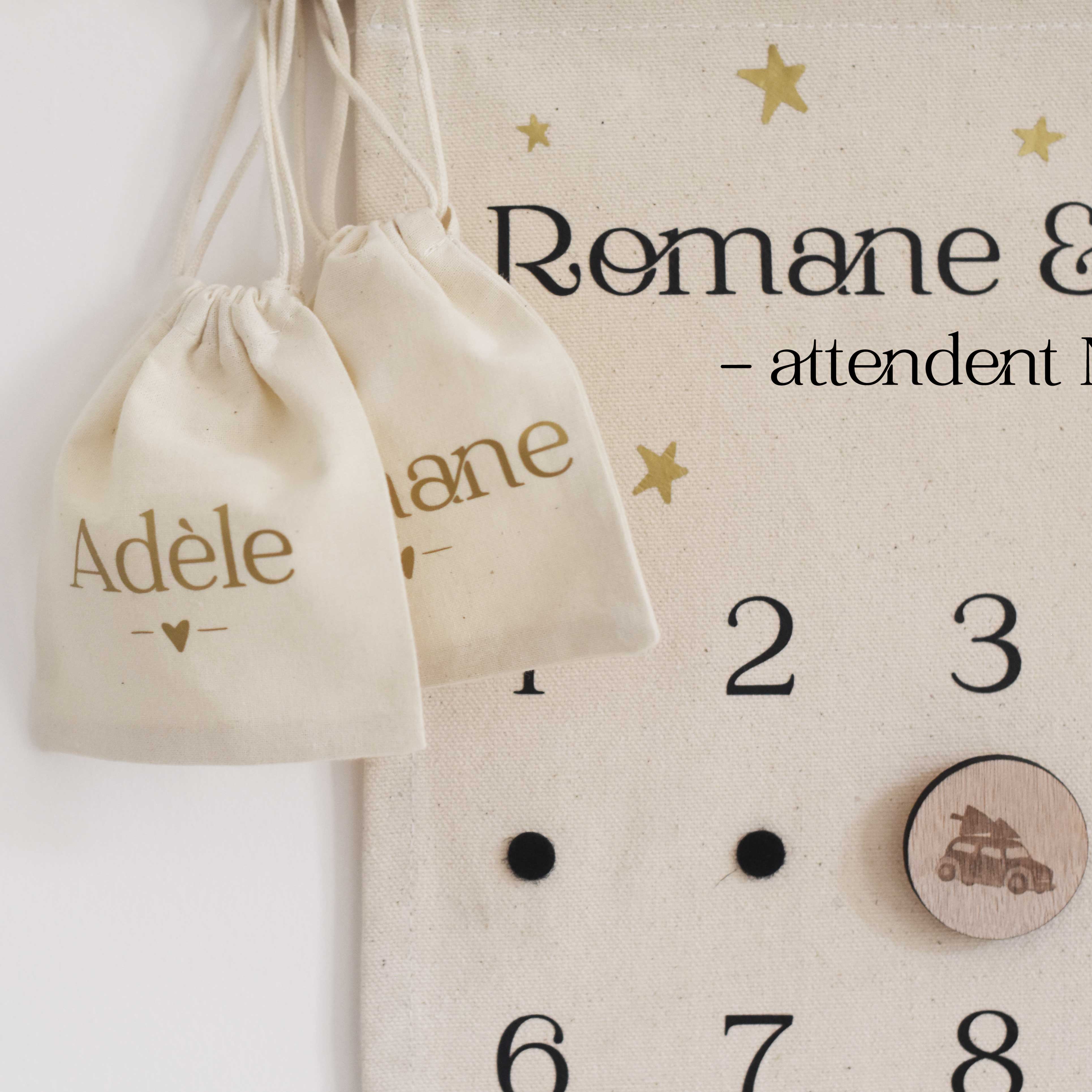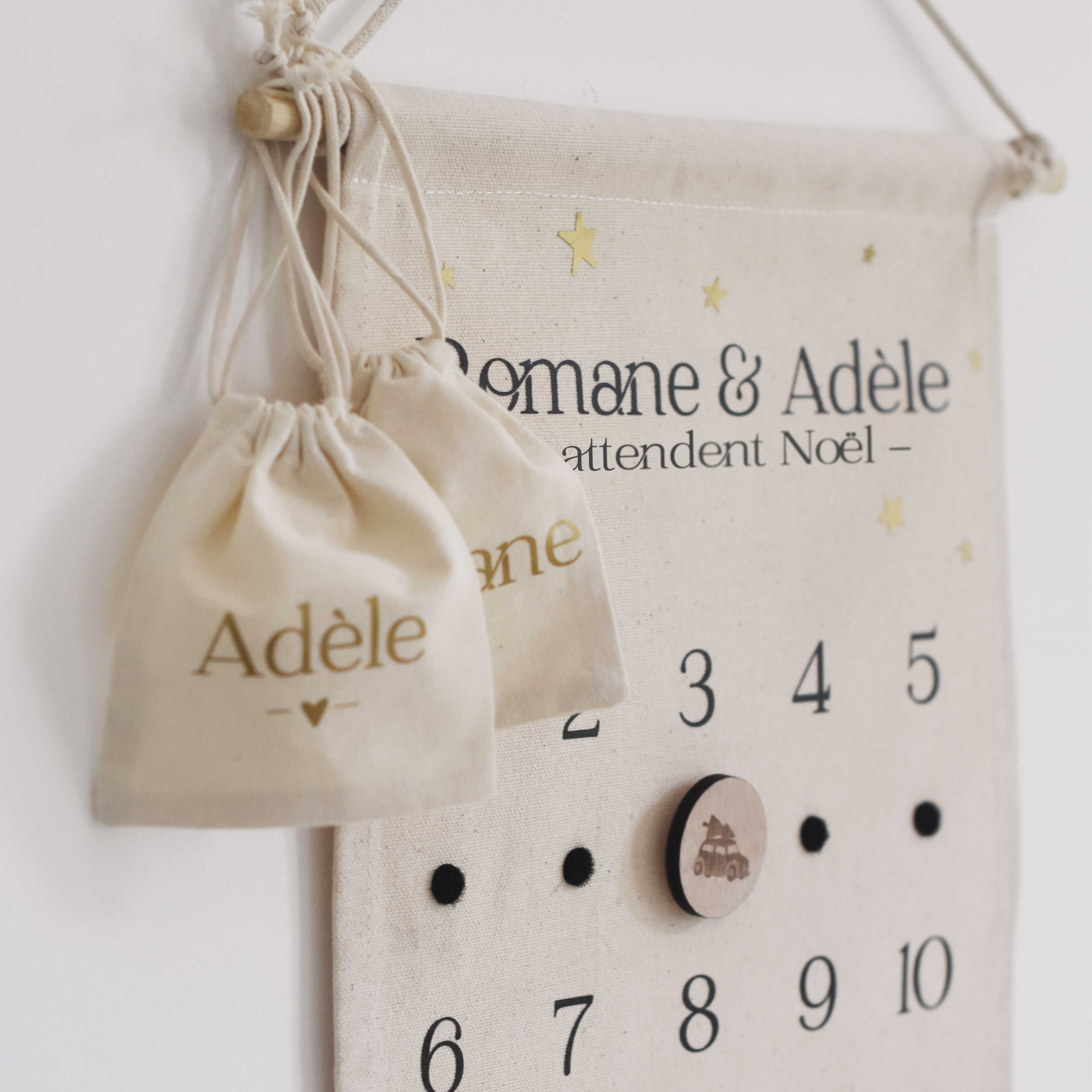 Découvrez notre calendrier de l'Avent à suspendre. Il est à personnaliser avec le prénom de votre/vos enfant(s).