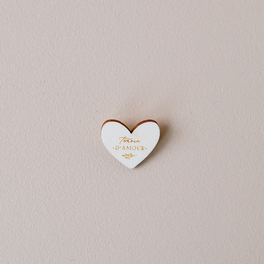 Découvrez nos jolis pin's coeur "Nomad" personnalisables. Imaginés par Les Mignonneries et fabriqués en peuplier, ils sont coupés et gravés dans notre atelier de Tours. A offrir à vos invités lors de votre mariage, ou simplement à vos plus proches (témoins, demoiselles / garçons d'honneur), ils seront le petit cadeau parfait à garder et utiliser.