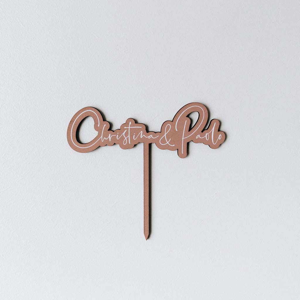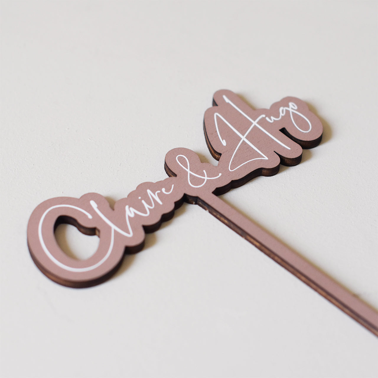 Le cake topper personnalisera et racontera l’histoire de votre événement. Indispensable pour rendre unique le moment du gâteau.