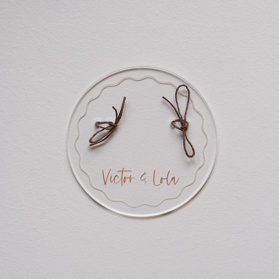 Découvrez le porte alliances en plexi transparent personnalisé Curve. Un porte alliances imaginée par Les Mignonneries à personnaliser avec vos prénoms. Il est coupé et personnalisé dans notre atelier.