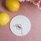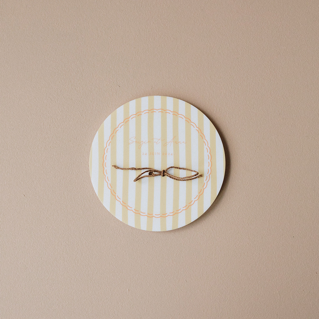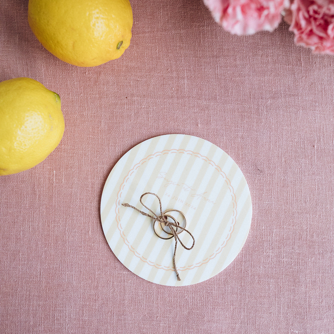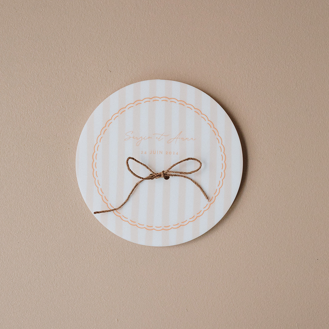 Notre porte alliances est fournie avec les petits liens en cordelette naturelle qui vous permettront d'attacher vos alliances. Vous pourrez indiquer les noms à imprimer dans le champs ci-dessous. Merci également de bien faire attention aux accents ou cédilles.