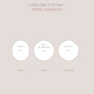 Créez votre porte alliance sur-mesure chez les Mignonneries ! Découvrez nos différents matériaux et personnalisez votre visuel avec nos nombreuses polices au choix. La liste des matériaux et des polices n'étant pas exhaustive, n'hésitez pas à nous contacter pour discuter de la faisabilité de votre projet.