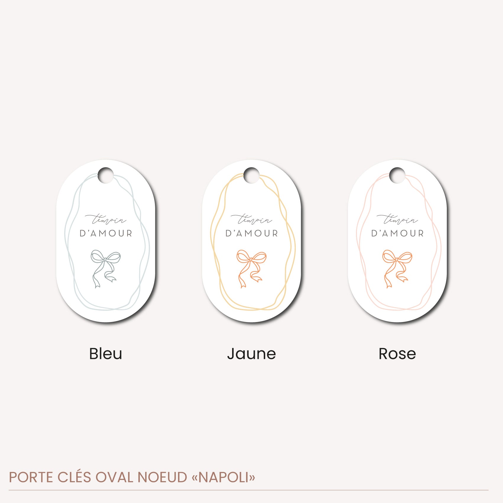 Découvrez nos jolis porte-clés oval noeud "Napoli" personnalisables. Imaginés par Les Mignonneries et fabriqués en plexi imprimé, ils sont coupés et imprimés dans notre atelier de Tours. A offrir à vos invités lors de votre mariage, ou simplement à vos plus proches (témoins, demoiselles / garçons d'honneur), ils seront le petit cadeau parfait à garder et utiliser.
