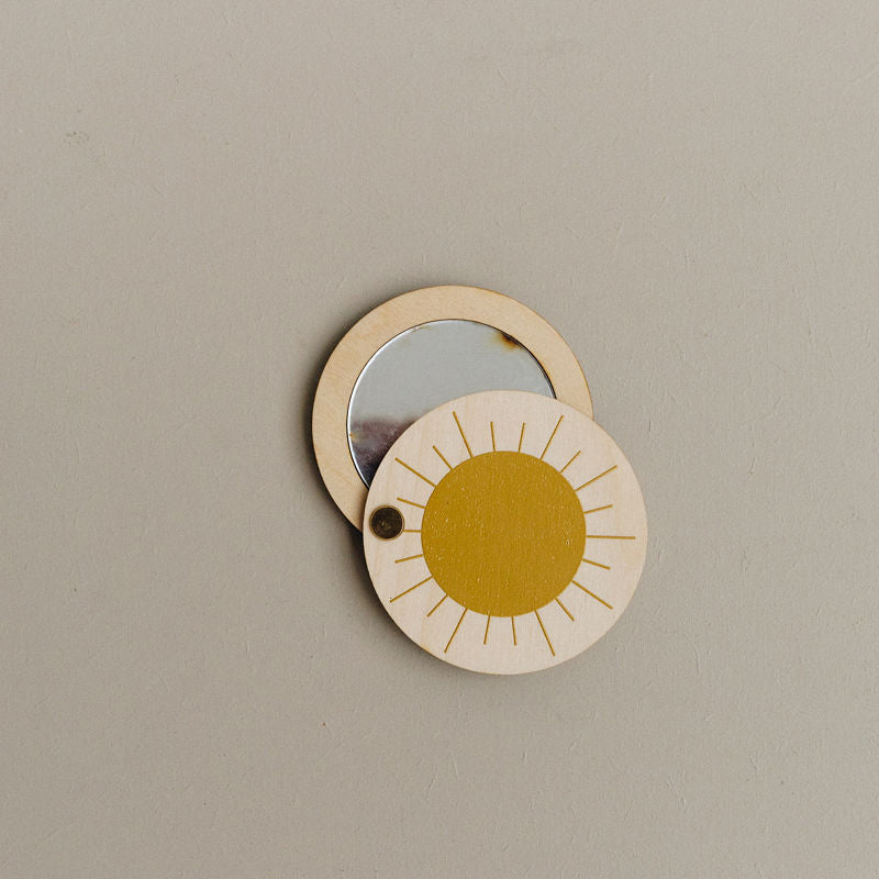 Ces miroirs de poche en bois Arc-en-ciel en forme de soleil sont le parfait cadeau à offrir à vos petits invités lors d'un anniversaire un baptême ou la table des enfants pour votre mariage.