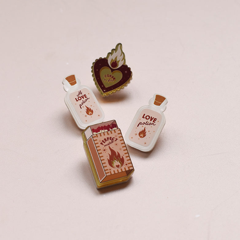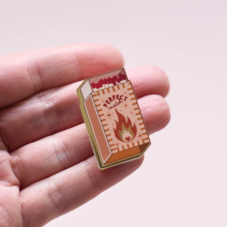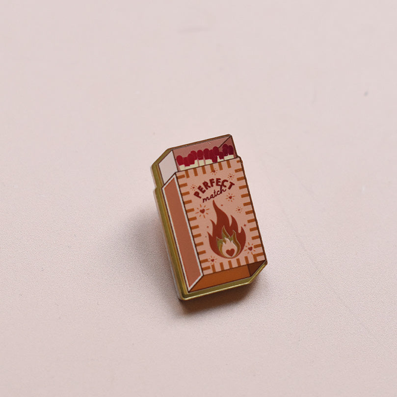 Le pin’s “Perfect Match” est une création originale Les Mignonneries, inspirée de l’iconographie de la boîte d’allumettes, symbole du coup de foudre et de l’alchimie parfaite.