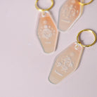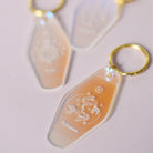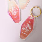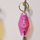 Découvrez ce joli porte-clés modèle motel holographique gravé. Grace à ses reflets de différentes couleurs, ce plexi n'est jamais le même !