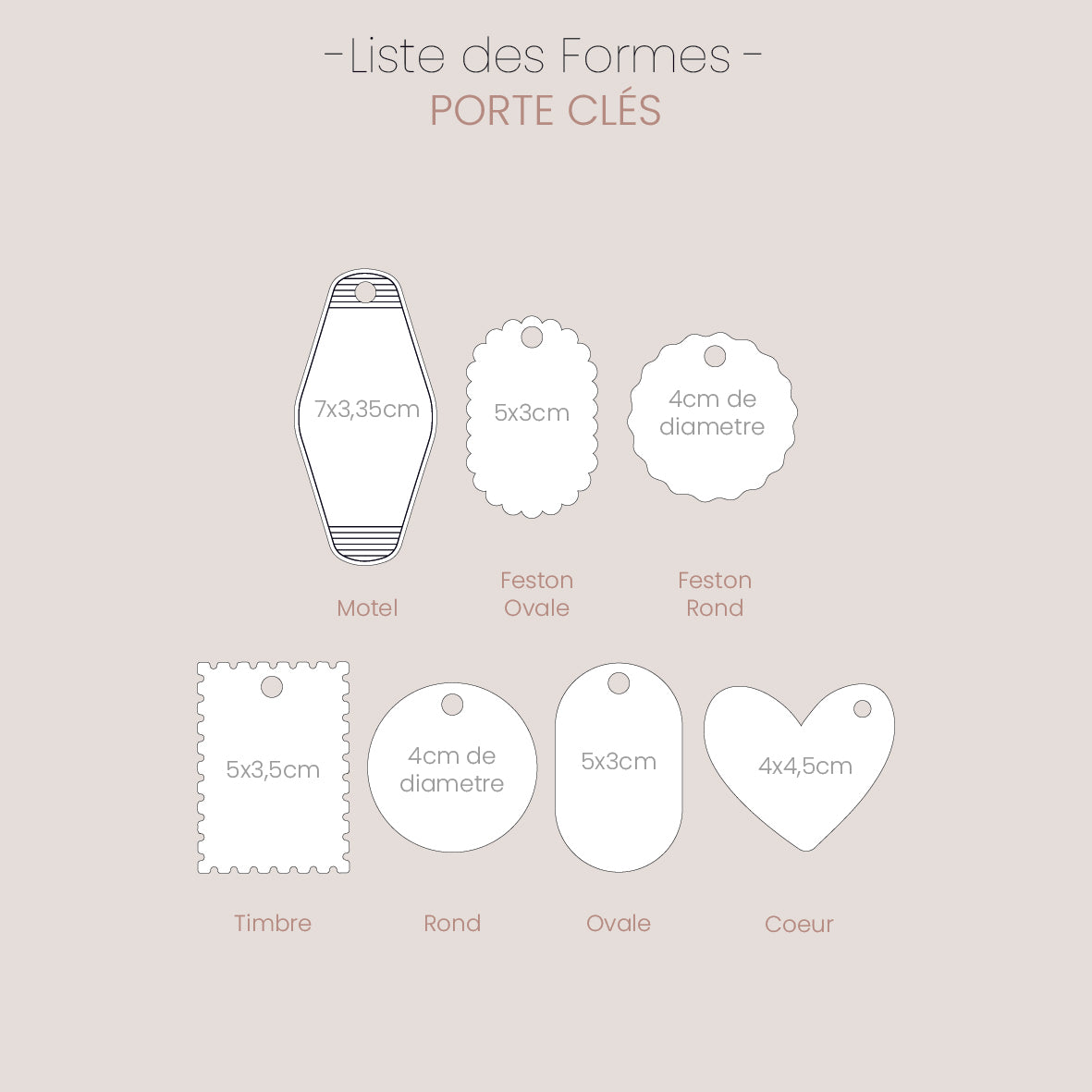 Découvrez nos jolis porte-clés sur mesure. Conçus par les Mignonneries et fabriqués dans le matériau de votre choix.
