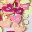 Découvrez nos jolis porte-clés Coeur personnalisables. Imaginés par Les Mignonneries et fabriqués en plexi brillant corail, cerise, lemon sorbet ou ornge fizz, ils sont coupés et imprimés dans notre atelier de tours.