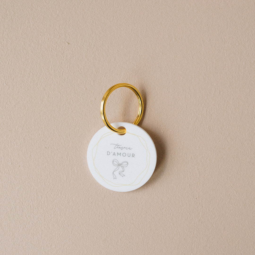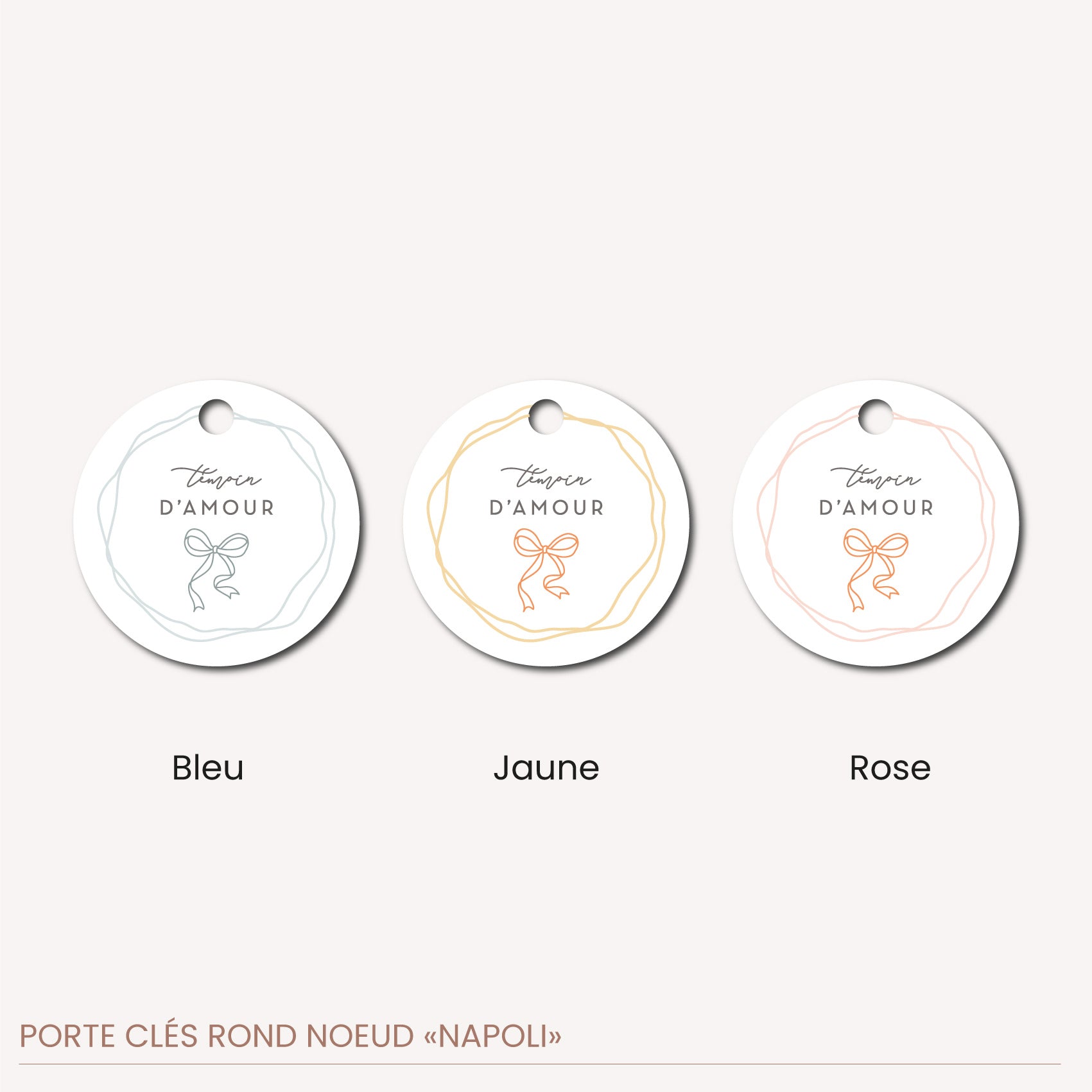 Découvrez nos jolis porte-clés rond noeud "Napoli" personnalisables. Imaginés par Les Mignonneries et fabriqués en plexi imprimé, ils sont coupés et imprimés dans notre atelier de Tours. A offrir à vos invités lors de votre mariage, ou simplement à vos plus proches (témoins, demoiselles / garçons d'honneur), ils seront le petit cadeau parfait à garder et utiliser.Ce porte clés fait partie de notre collection Napoli, une collection vivante et colorée.
