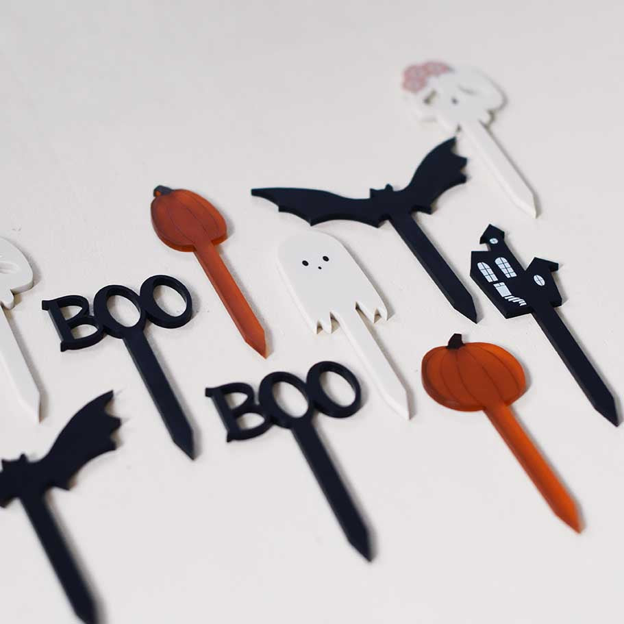 Ils font parti de notre collection Halloween. Cette collection en bois et plexi plaira à vos enfants pour son côté effrayant et amusant. Nous avons imaginé ces accessoires uniques pour la décoration de votre table à Halloween.