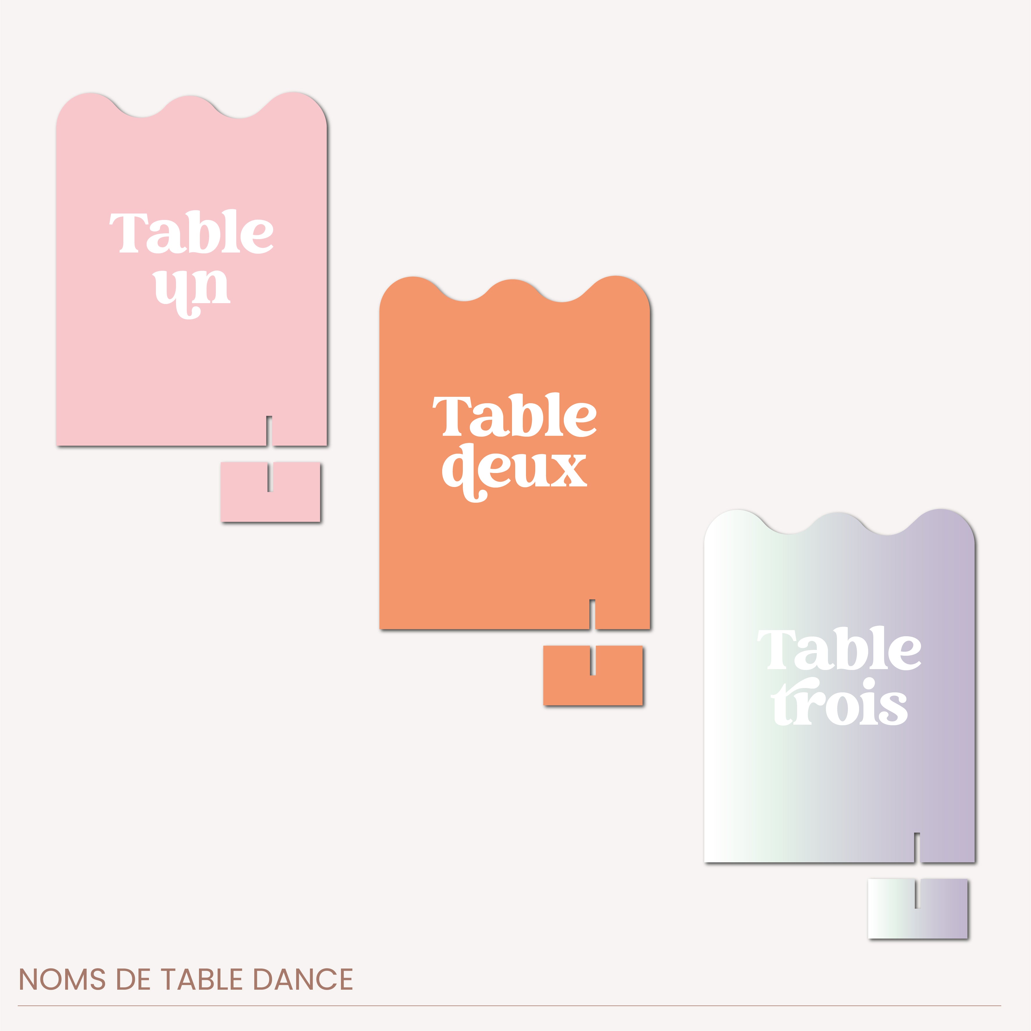 Découvrez les noms de table personnalisés de notre collection Dance, une collection tendance et colorée qui s’inspire de l’univers du célèbre festival californien.