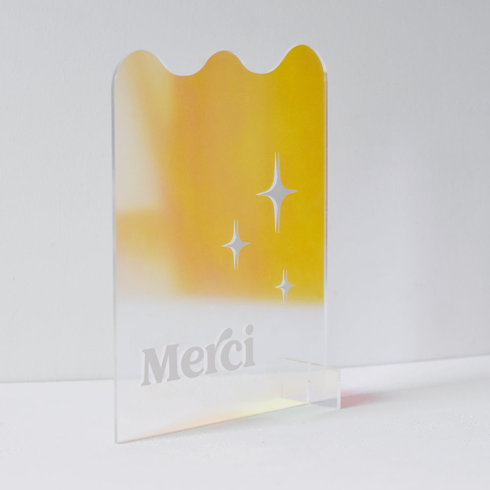Découvrez notre panneau "urne" en plexi coloré ou holographique Dance. Imaginé par Les Mignonneries, il est découpé et imprimé dans notre atelier.
