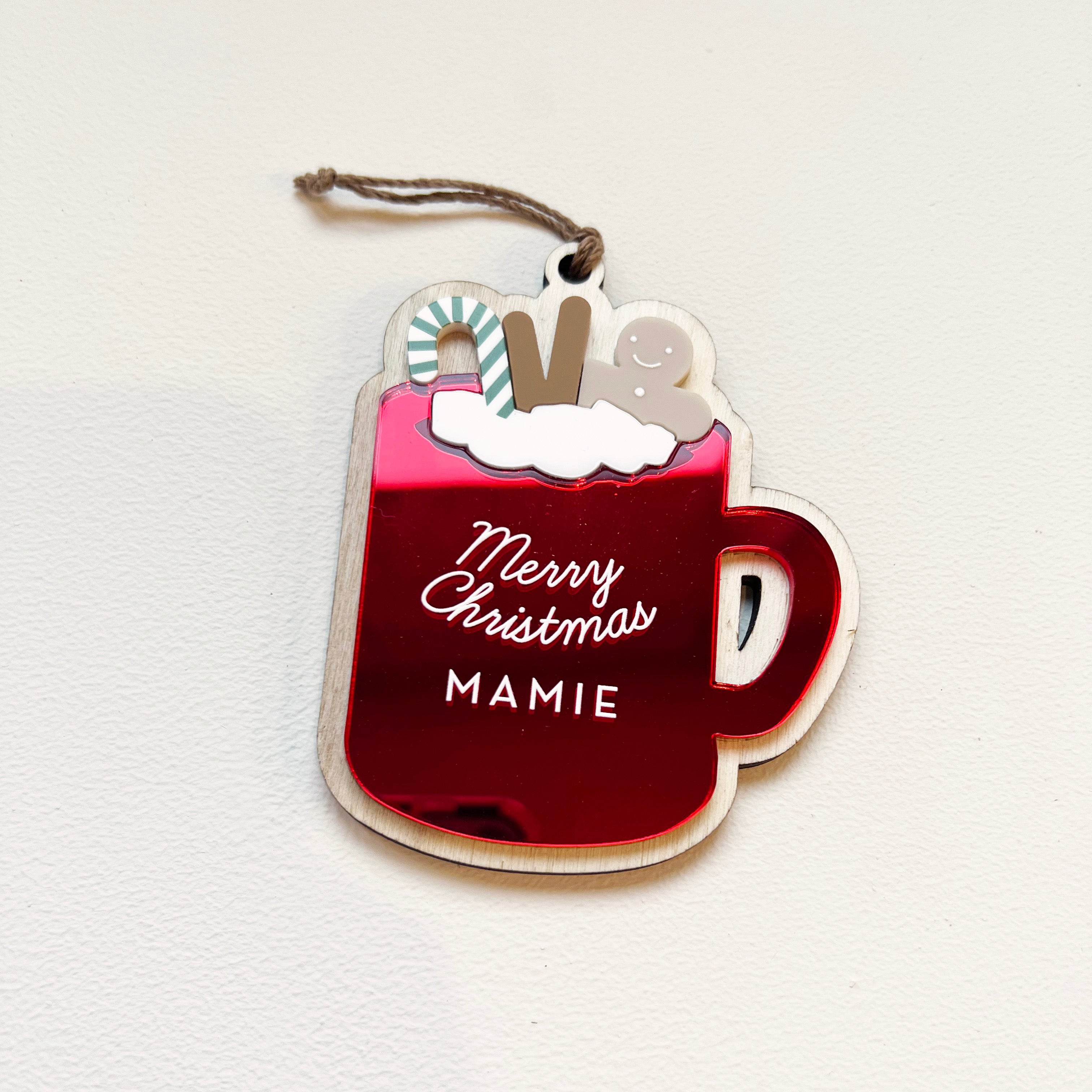 Découvrez notre ornement de sapin "Mug" de Noël rose les mignonneries.
