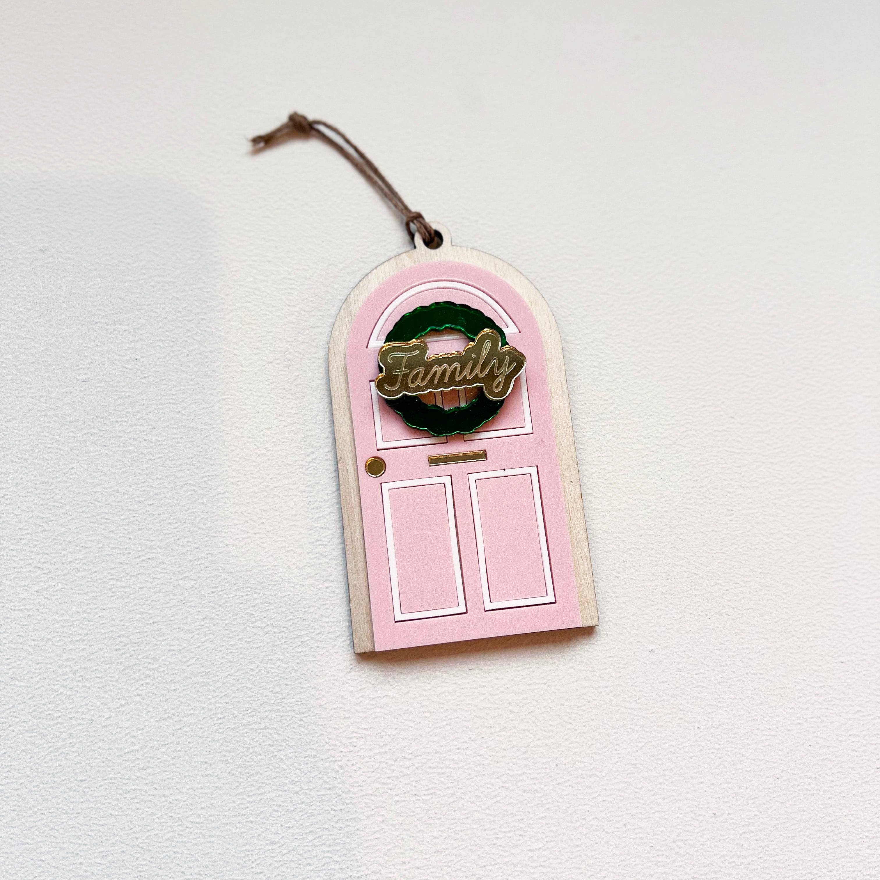 Découvrez notre ornement de sapin "porte" de Noël rose les mignonneries.