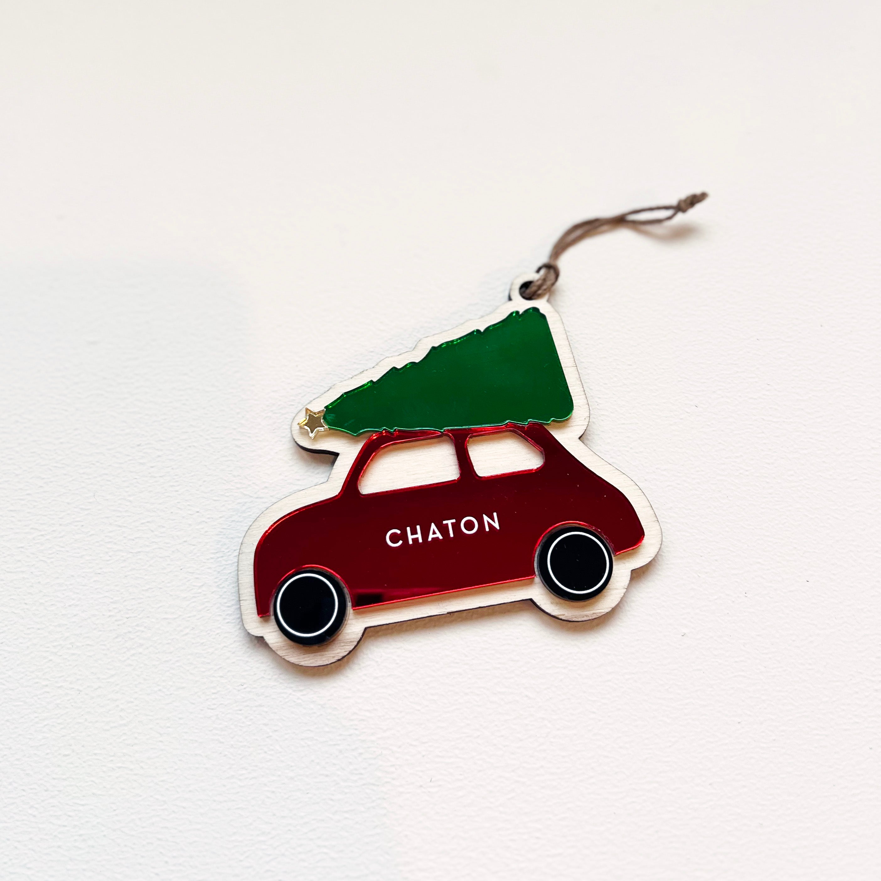 Découvrez notre ornement de sapin "Voiture" de Noël rouge les mignonneries.