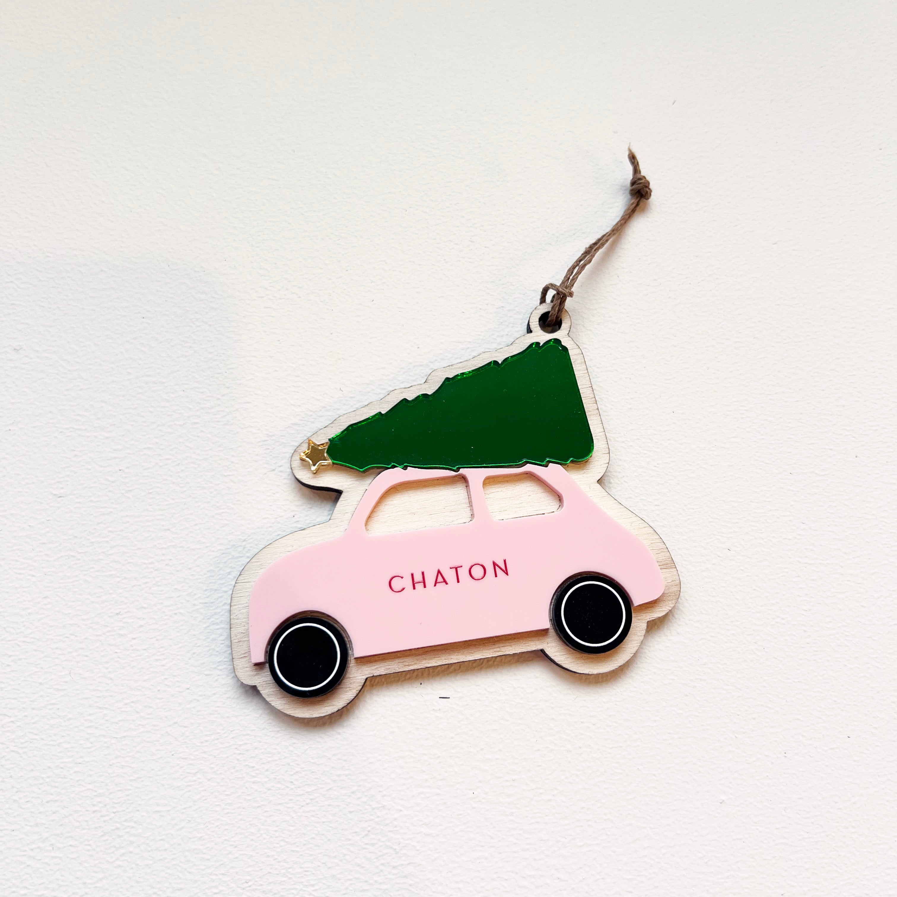 Découvrez notre ornement de sapin "Voiture" de Noël rouge les mignonneries.