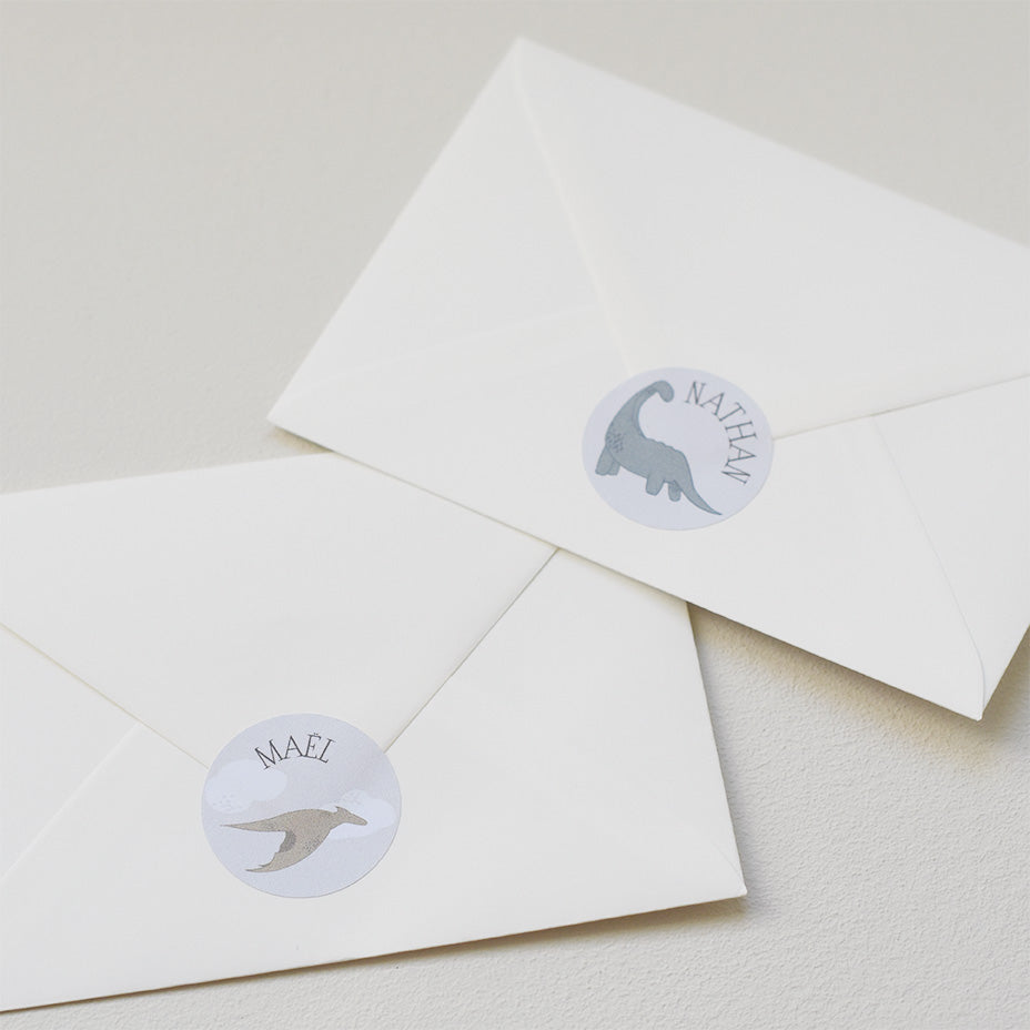 Découvrez ces jolis stickers Dinosaure vendus par planche de 6. Ils seront parfaits pour décorer vos invitations et enveloppes.