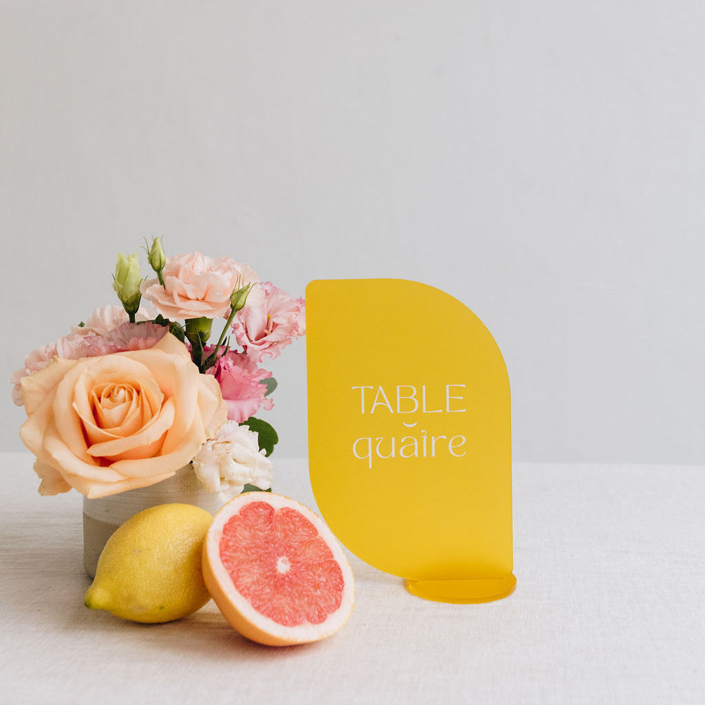 Découvrez les noms de table personnalisés en plexi givré coloré Dolce. Des noms de tables coupés et imprimés par Les Mignonneries à personnaliser avec vos propres termes.