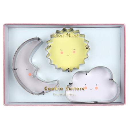 Découvrez cet ensemble d'emporte-pièces soleil, lune et nuage!