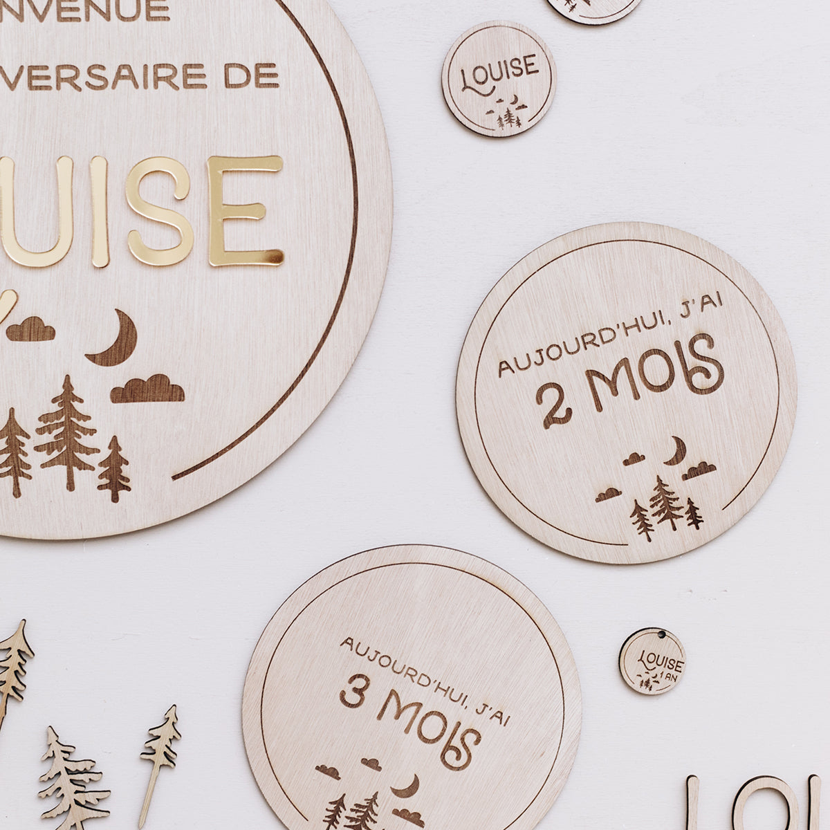 Fabriquées à partir d'okoumé, elles sont coupées et gravées dans notre atelier.