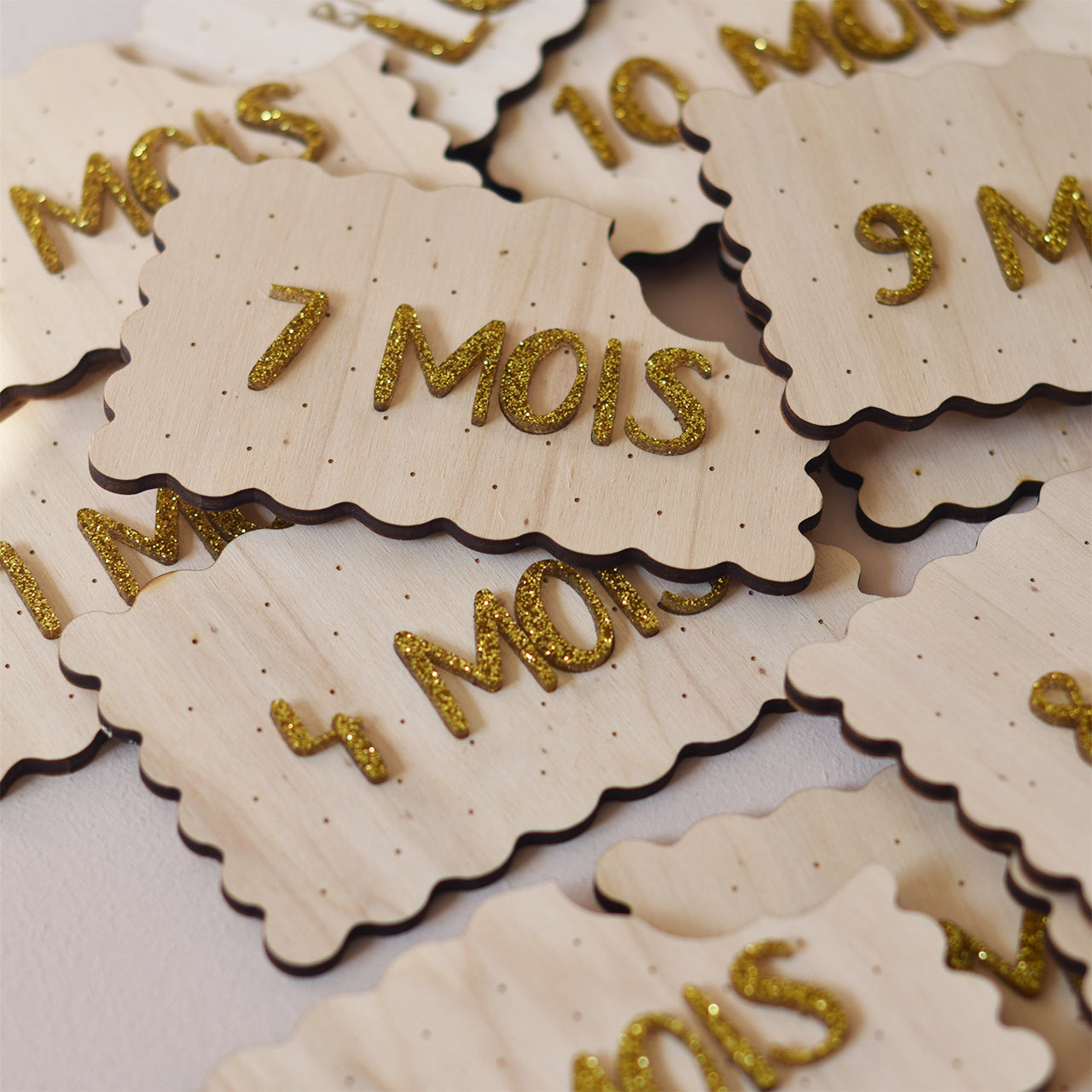 Découvrez ce lot de 12 cartes étapes en bois et plexi de notre collection Milk and Cookies. Imaginées par les Mignonneries, ces jolies cartes étape rythmeront la première année de votre bébé avec une petite étoile qui s'ajoute à chaque mois!