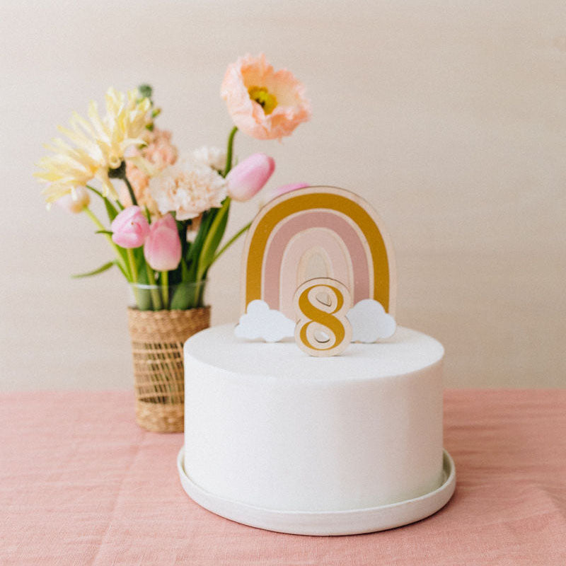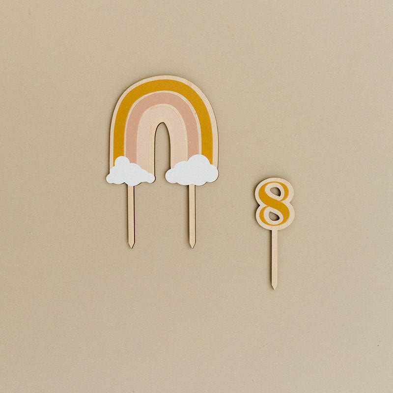Découvrez notre cake topper Arc-en-ciel. Imaginé par Les Mignonneries, il créera tout de suite un superbe effet. Ce cake topper est composé d'un arc en ciel + un chiffre au choix en bois imprimé.