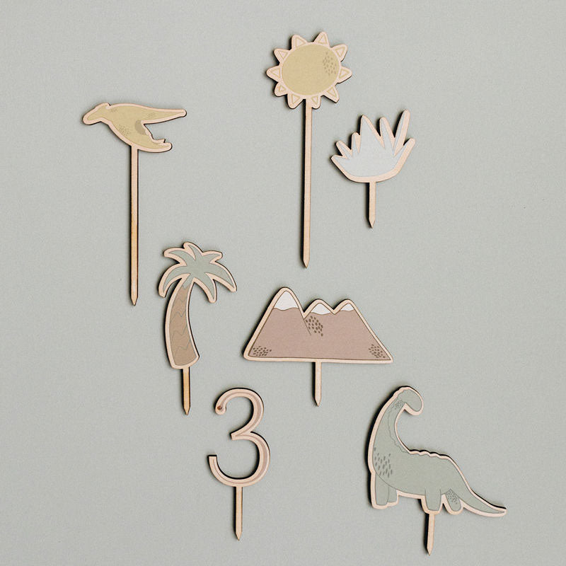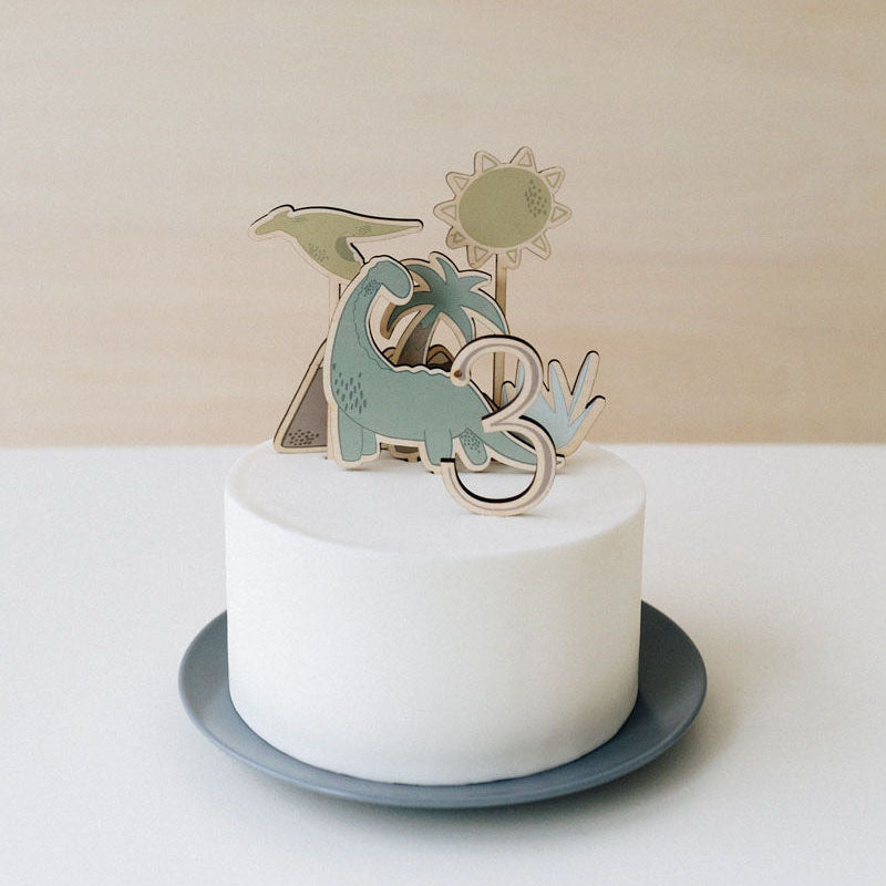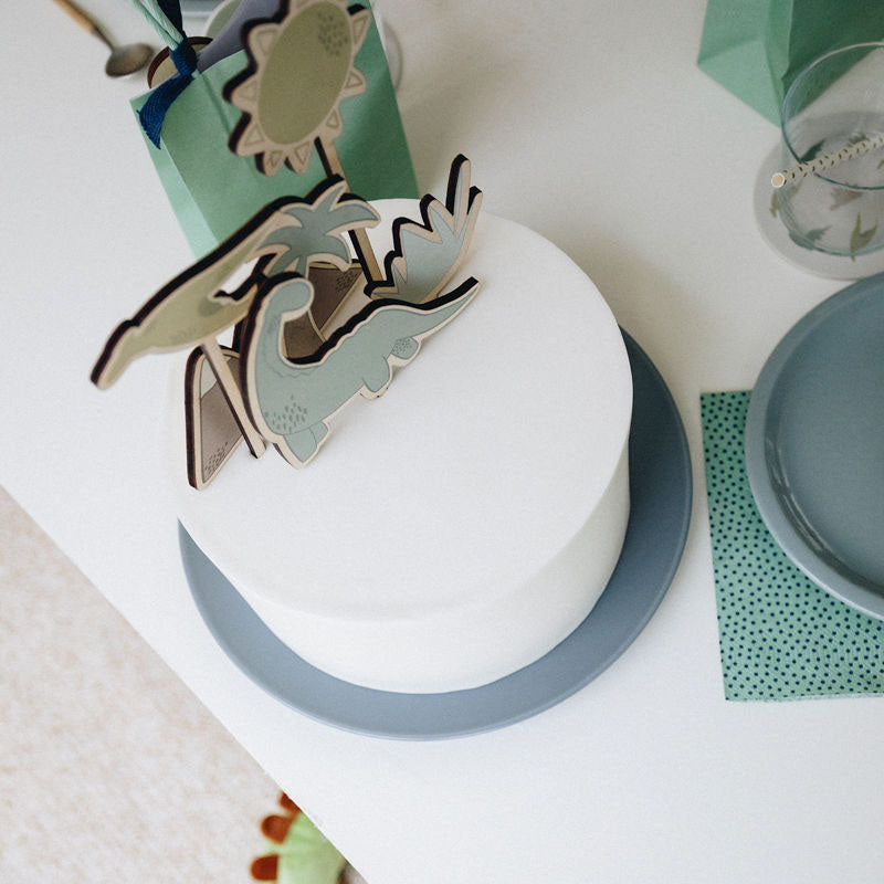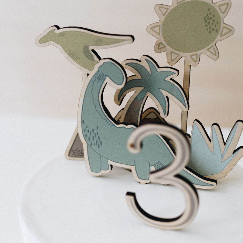 Découvrez notre cake topper Dino. Imaginé par Les Mignonneries comme un petit paysage à planter sur votre gâteau, il créera tout de suite un superbe effet. Ce cake topper est composé de 6 éléments + un chiffre au choix en peuplier imprimé.