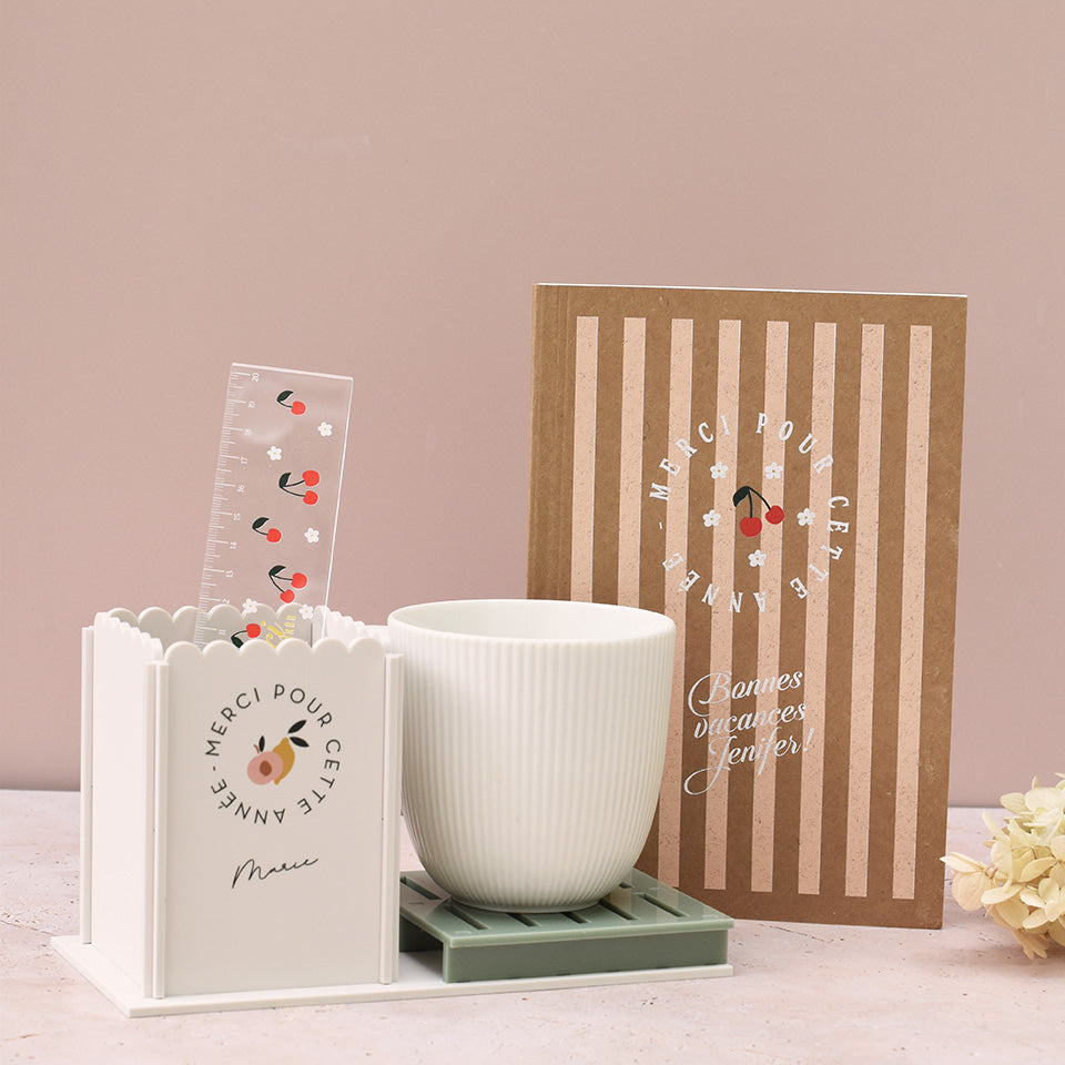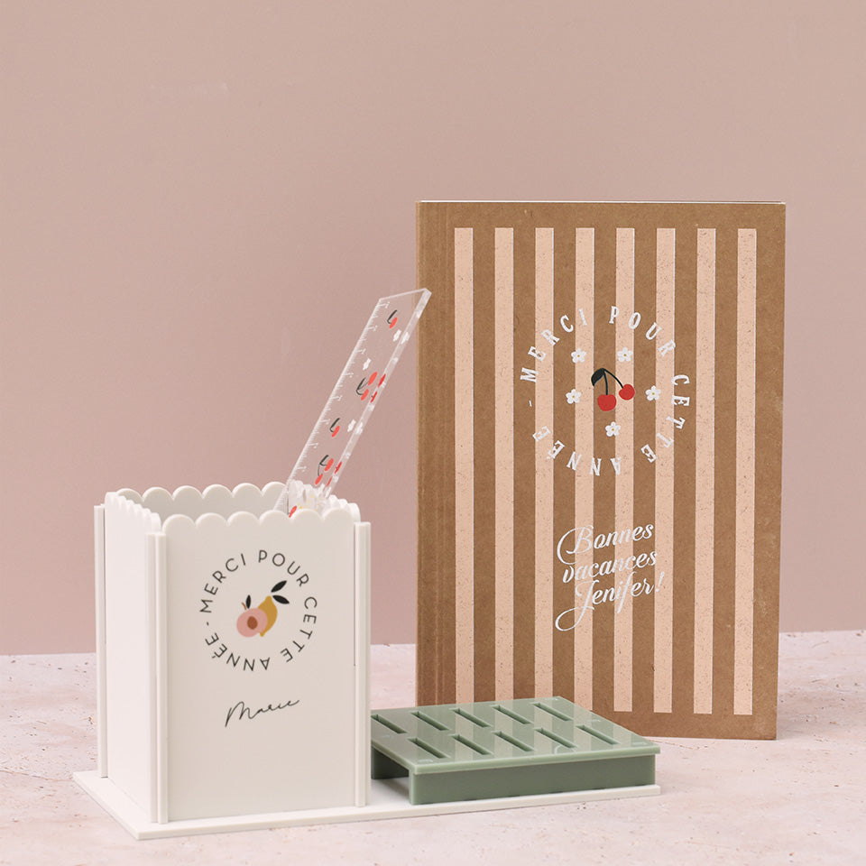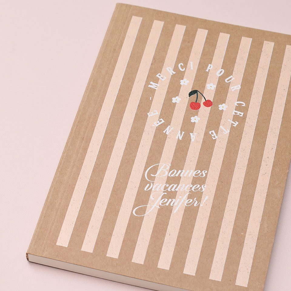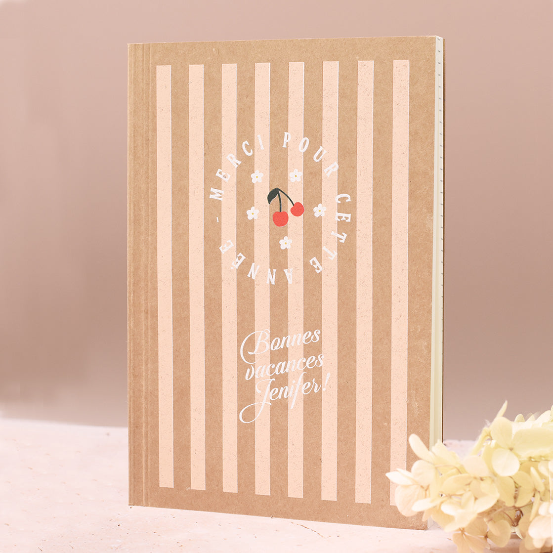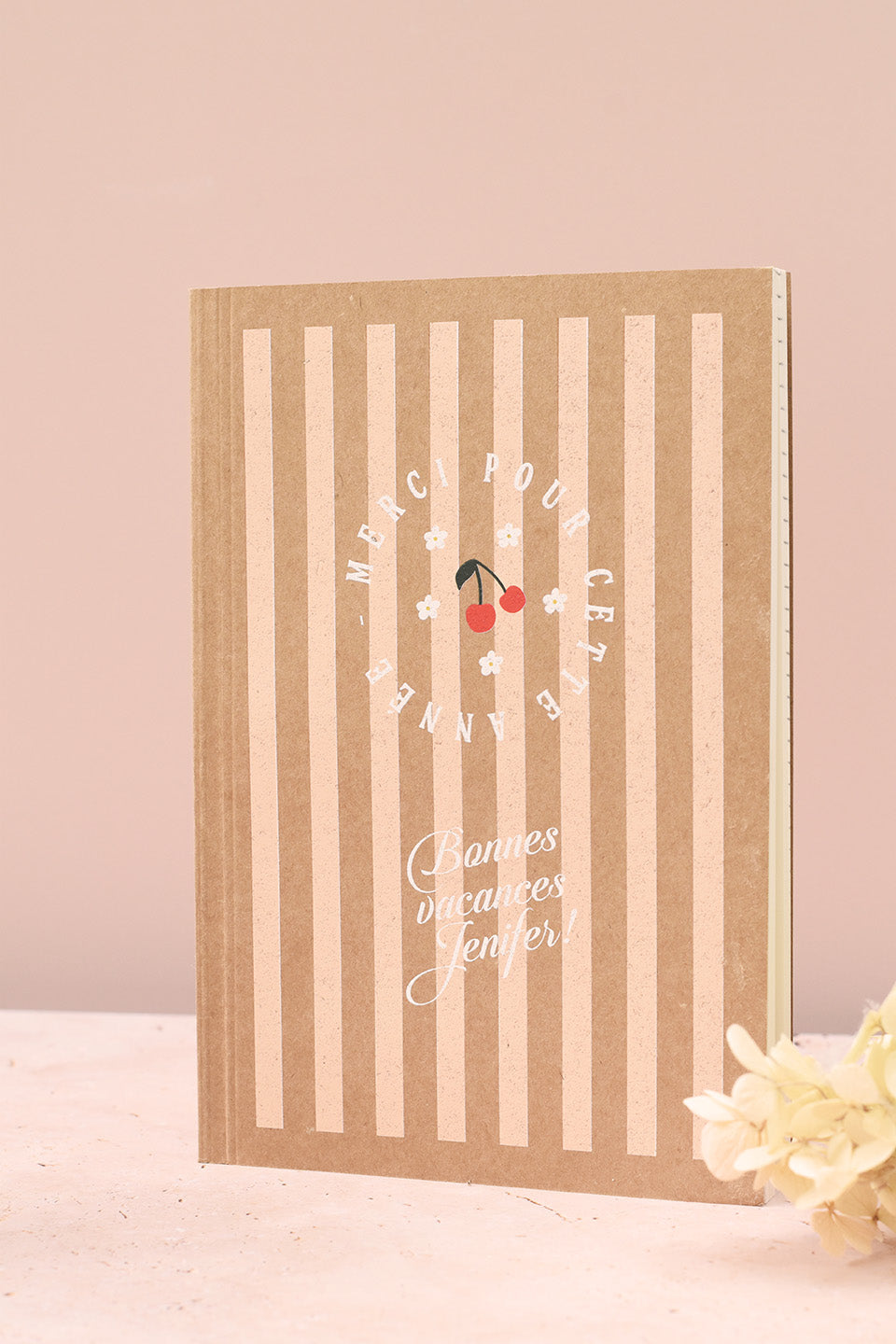 Nos jolis carnets, sont personnalisés dans notre atelier, avec une illustration imaginée par les mignonneries. Le cadeau ideal et pratique pour celles-et ceux qui ont accompagné vos enfants pendant toute une année !