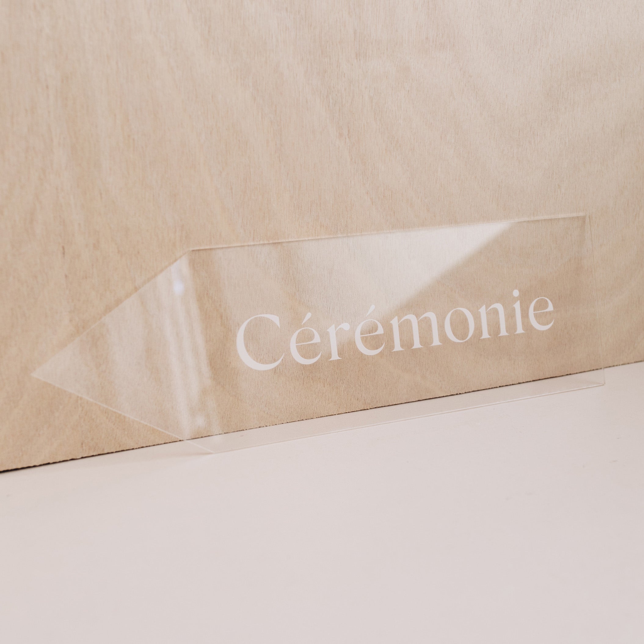 Découvrez les flèches directionnelles personnalisées de la collection Sweet. Cette collection vous plaira pour son côté délicat et chaleureux du bois et plexi. Découvrez les accessoires de décoration pour assortir à vos menus.